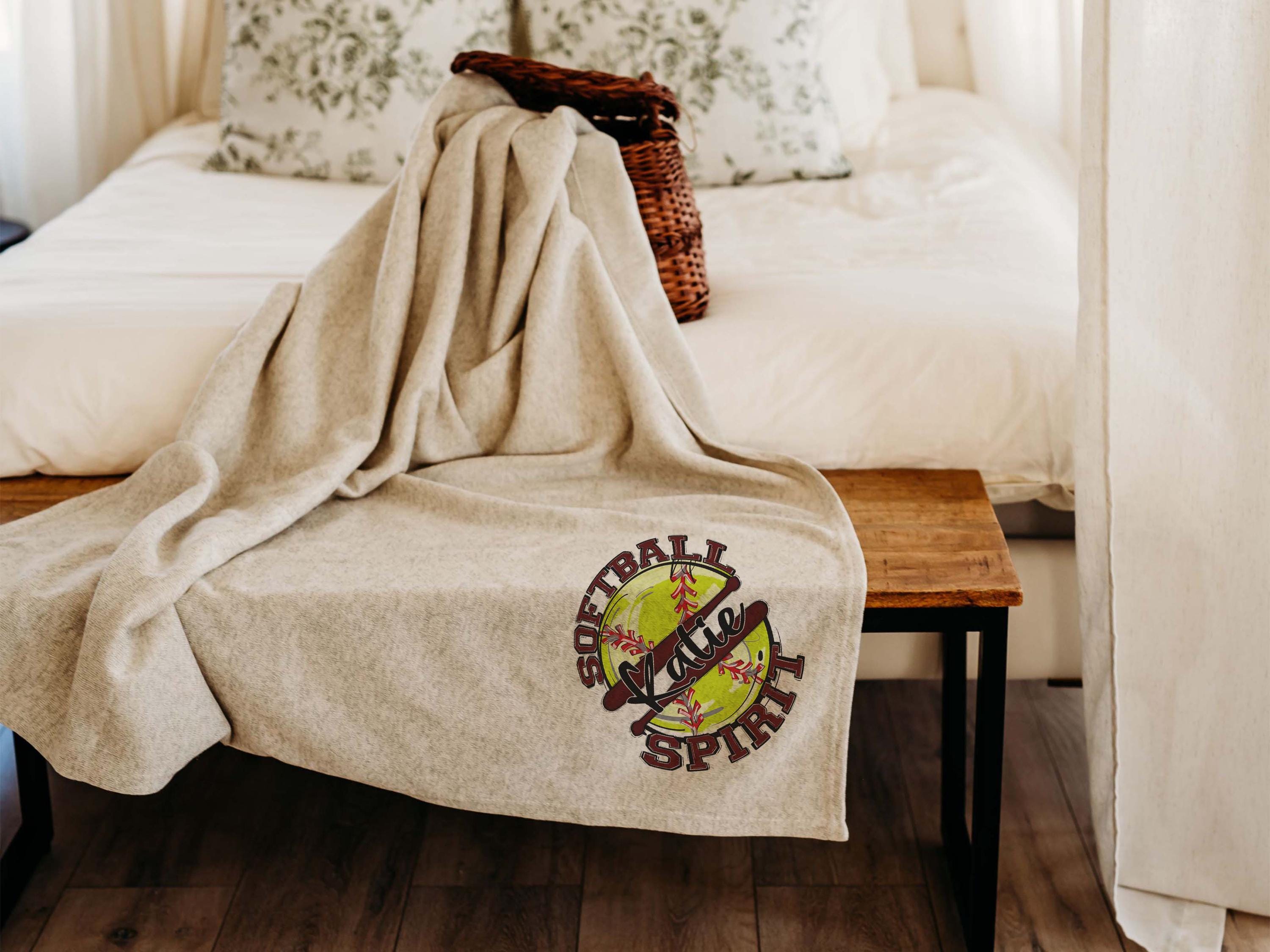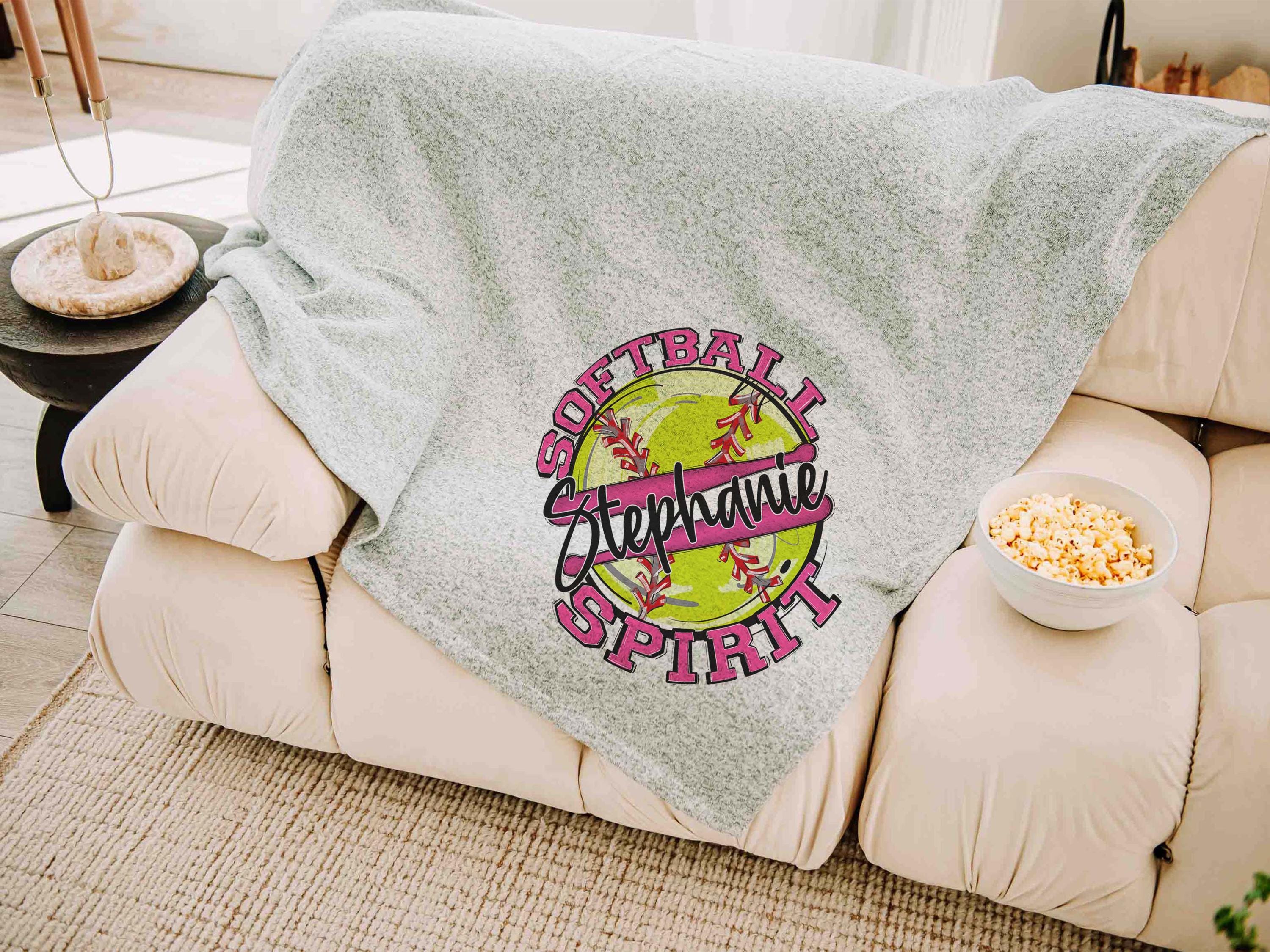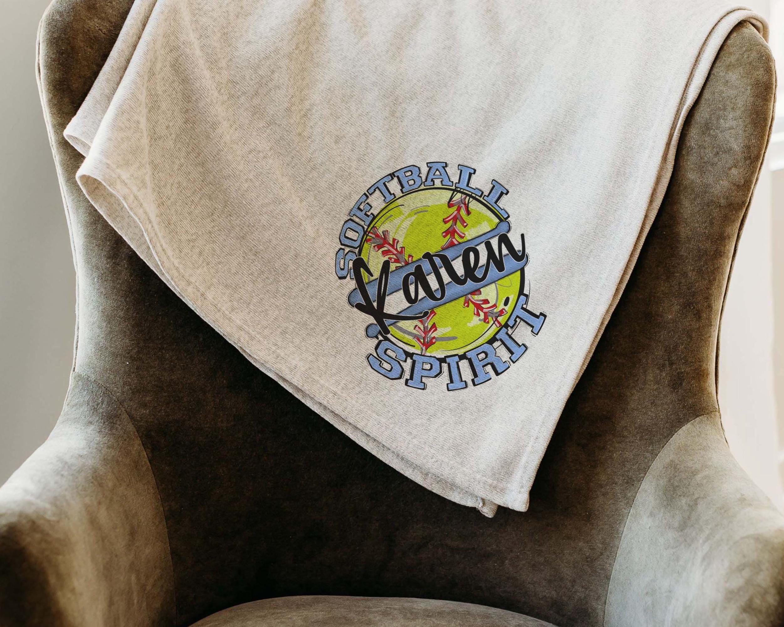 A personalized name in Carolina blue with a softball spirit style makes a great addition to the sofa or a favorite spot to relax. A great Mothers Day gift for a mother in law or daughter and a fun pick for women who love softball-inspired pieces.