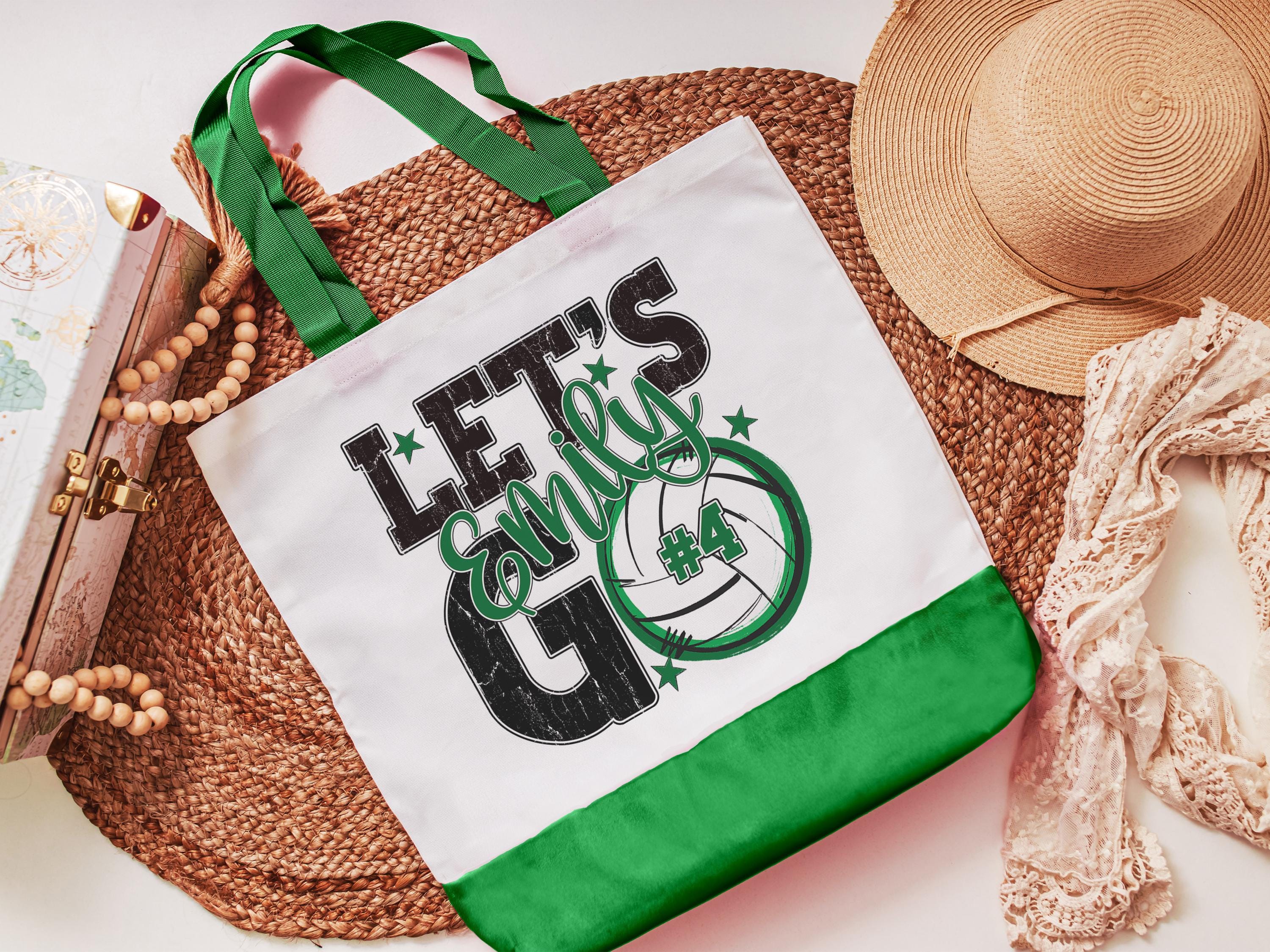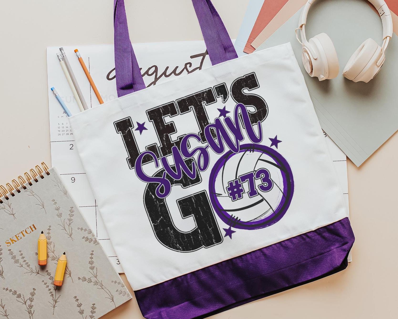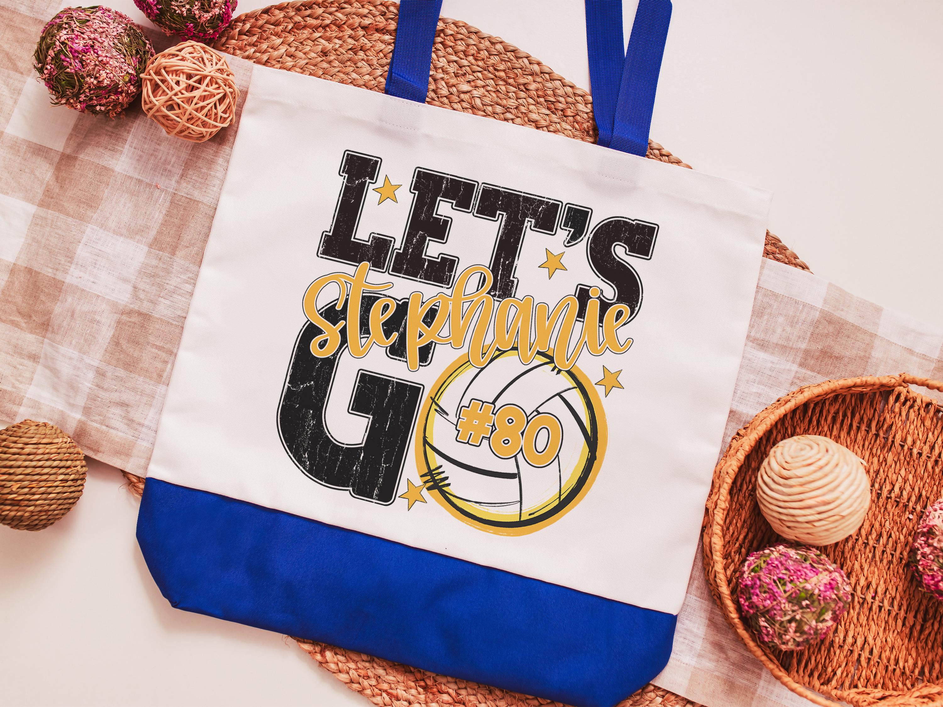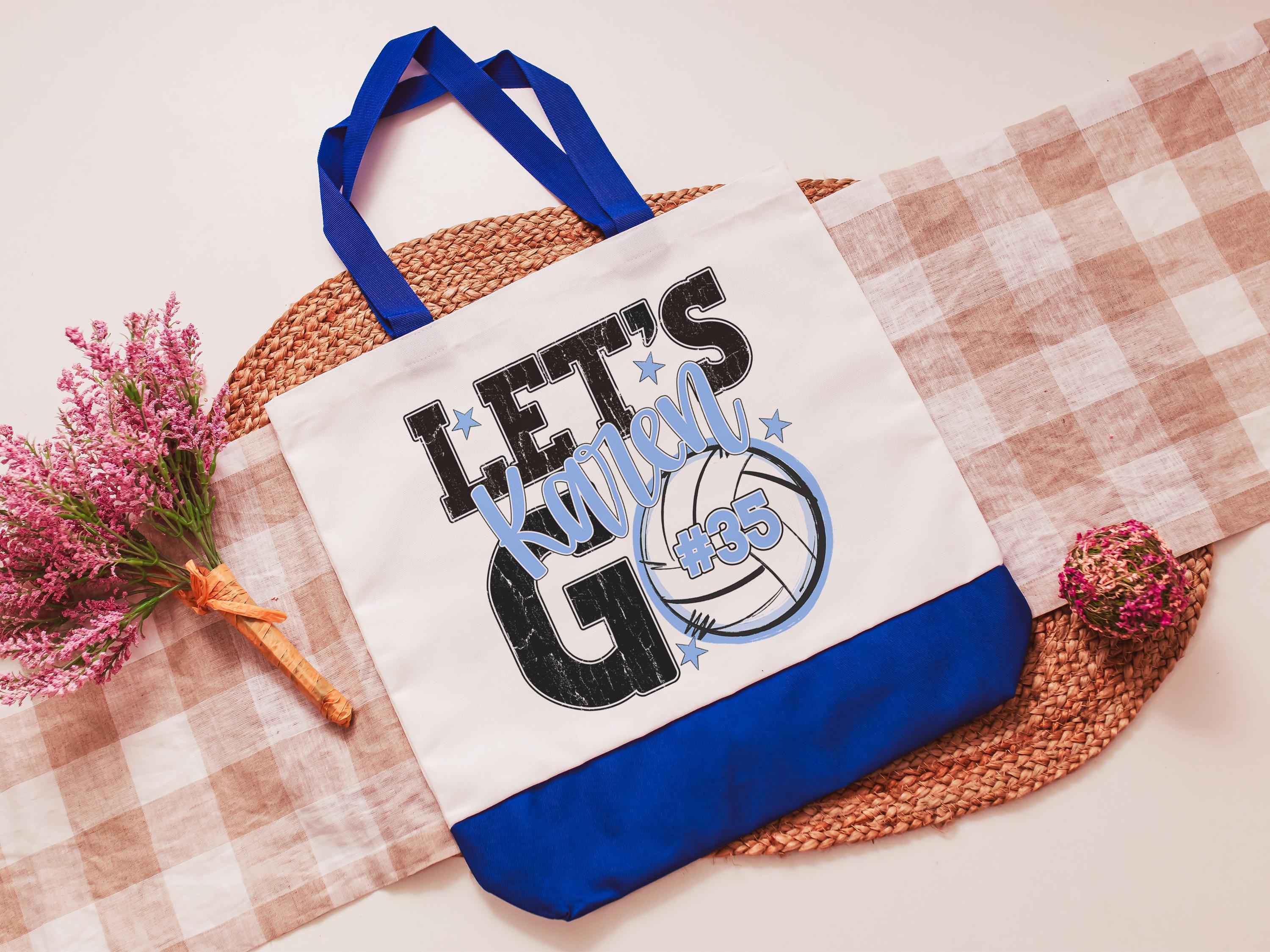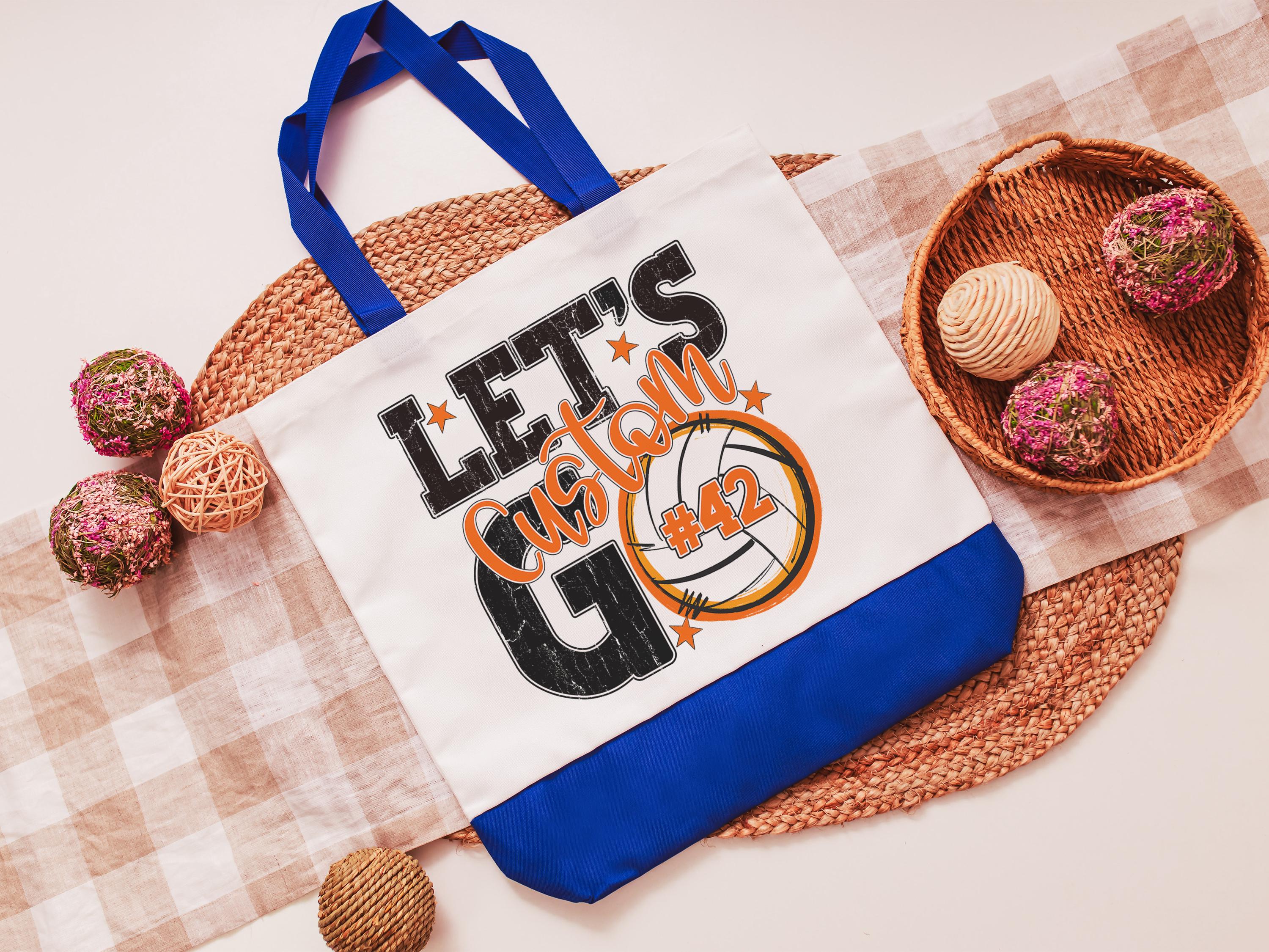 A personalized volleyball design adds a put-together look for tournaments, errands, or everyday use with a roomy tote bag. A matching wristlet with zipper is available to pair with it, making a great gift for her or any lady volleyball player who loves practical volleyball gifts.
