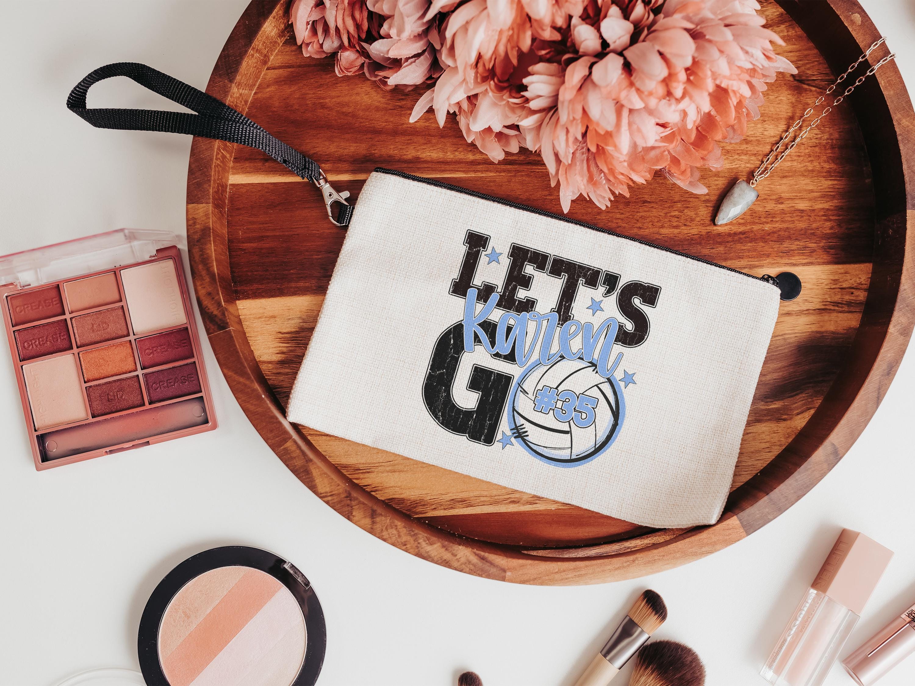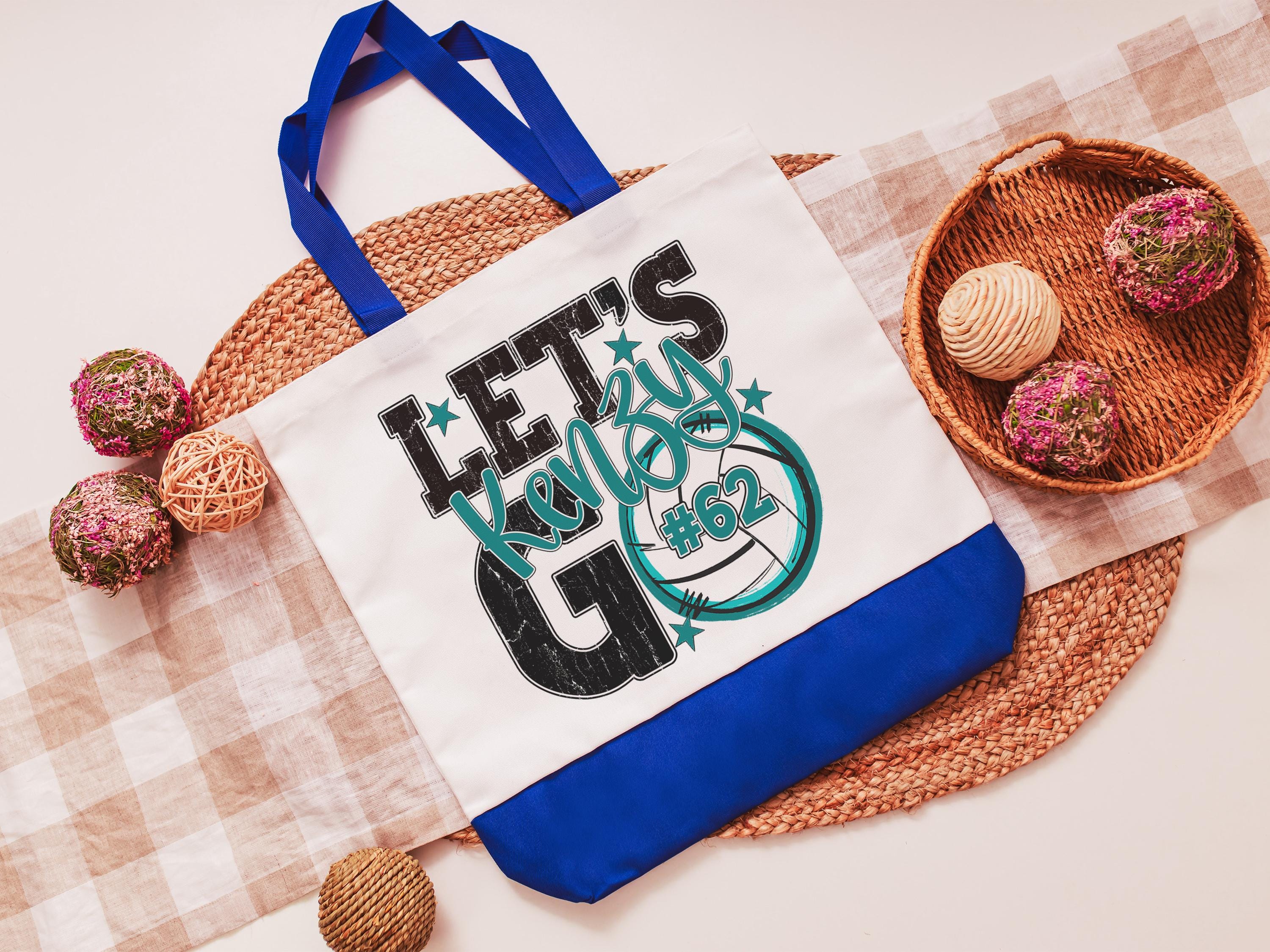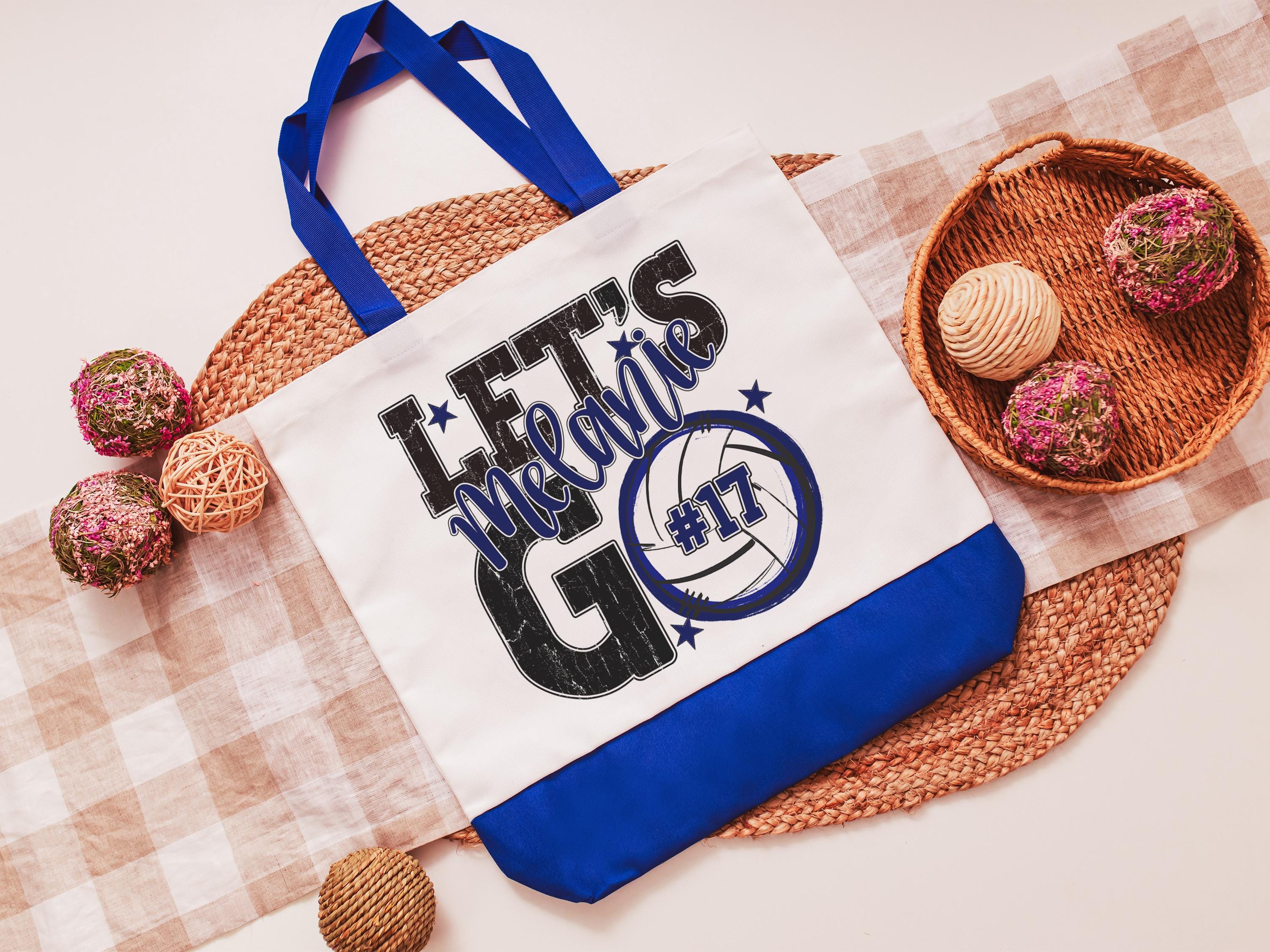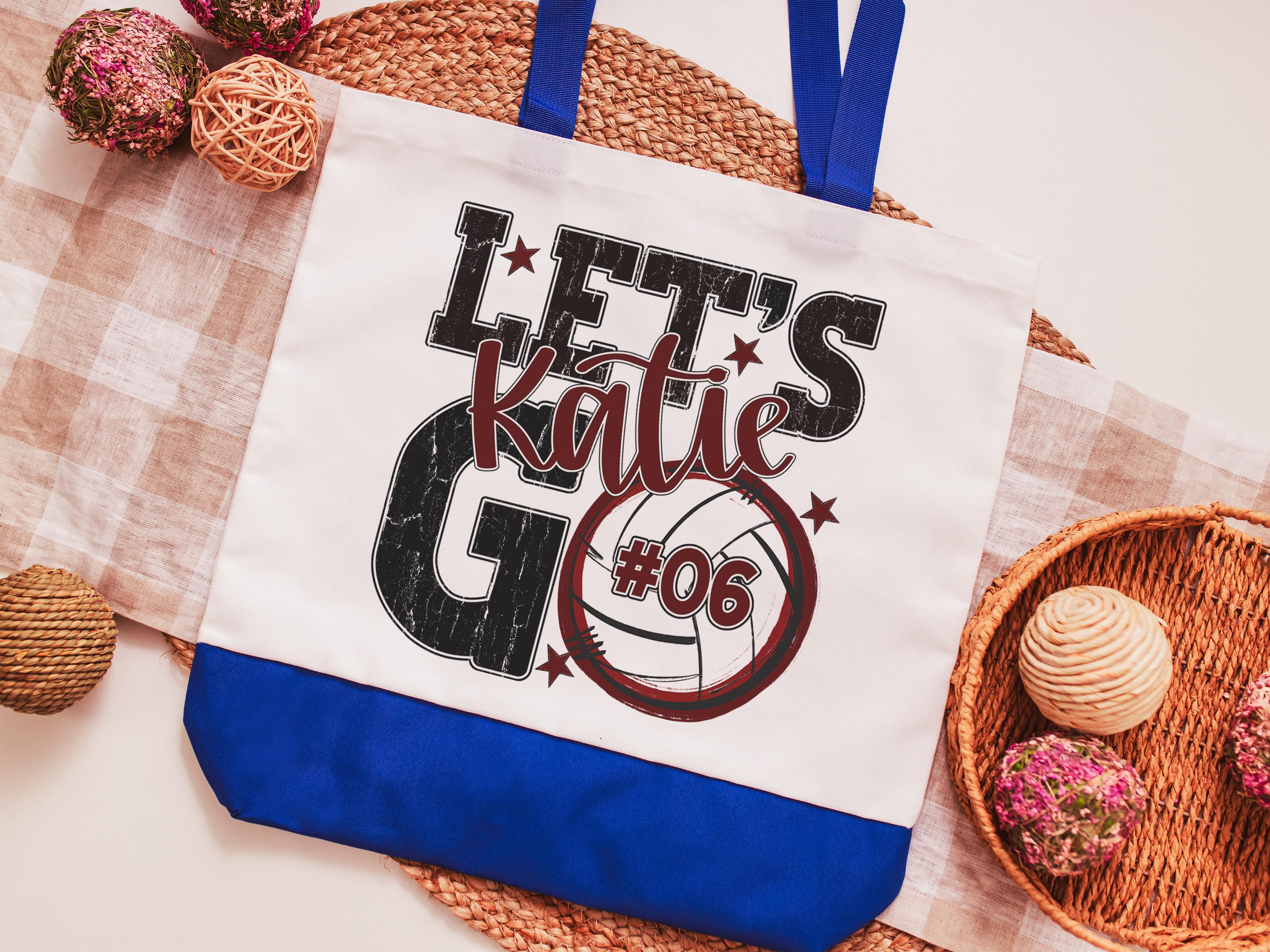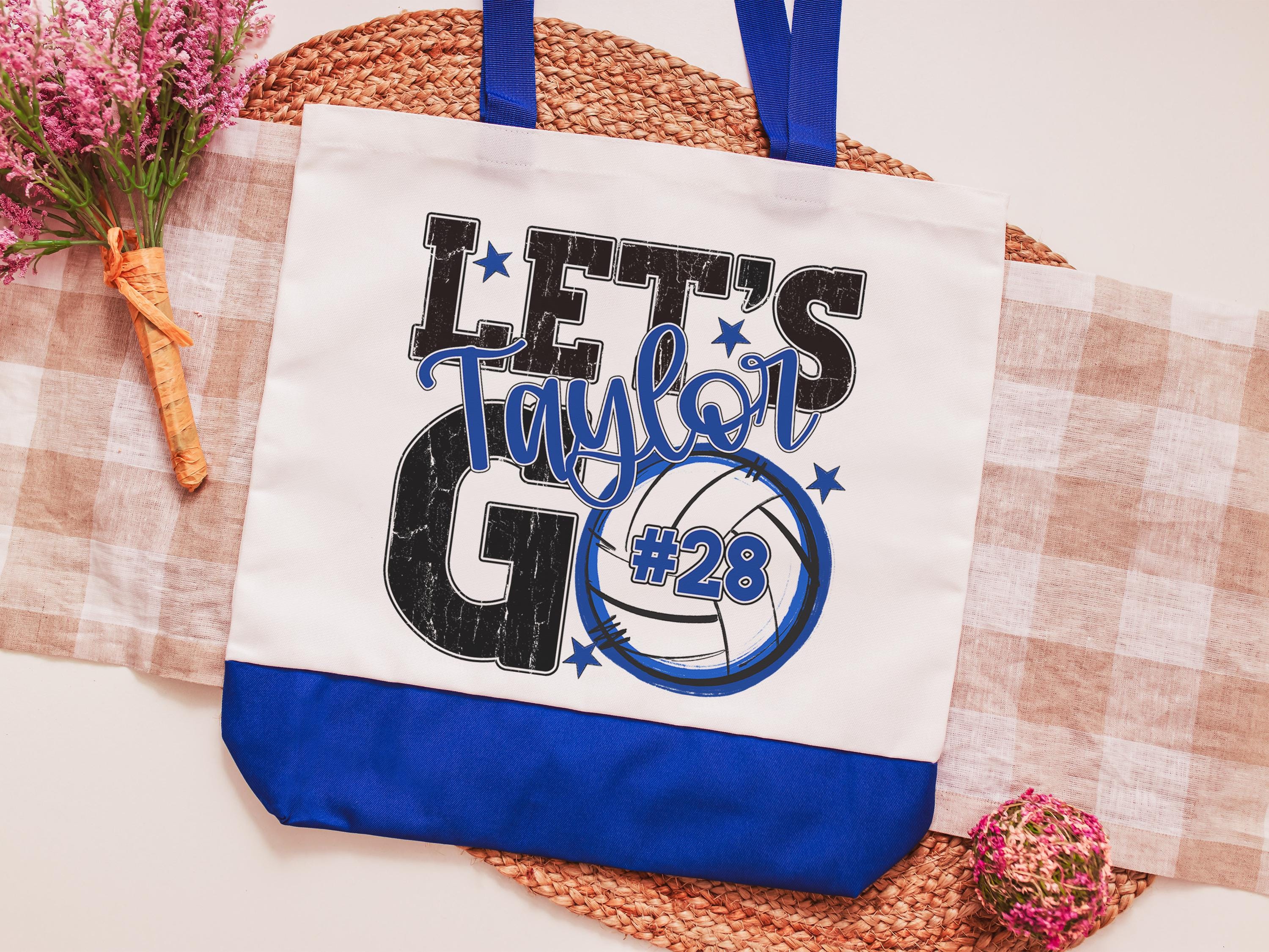 A personalized volleyball design adds a put-together look for tournaments, errands, or everyday use with a roomy tote bag. A matching wristlet with zipper is available to pair with it, making a great gift for her or any lady volleyball player who loves practical volleyball gifts.