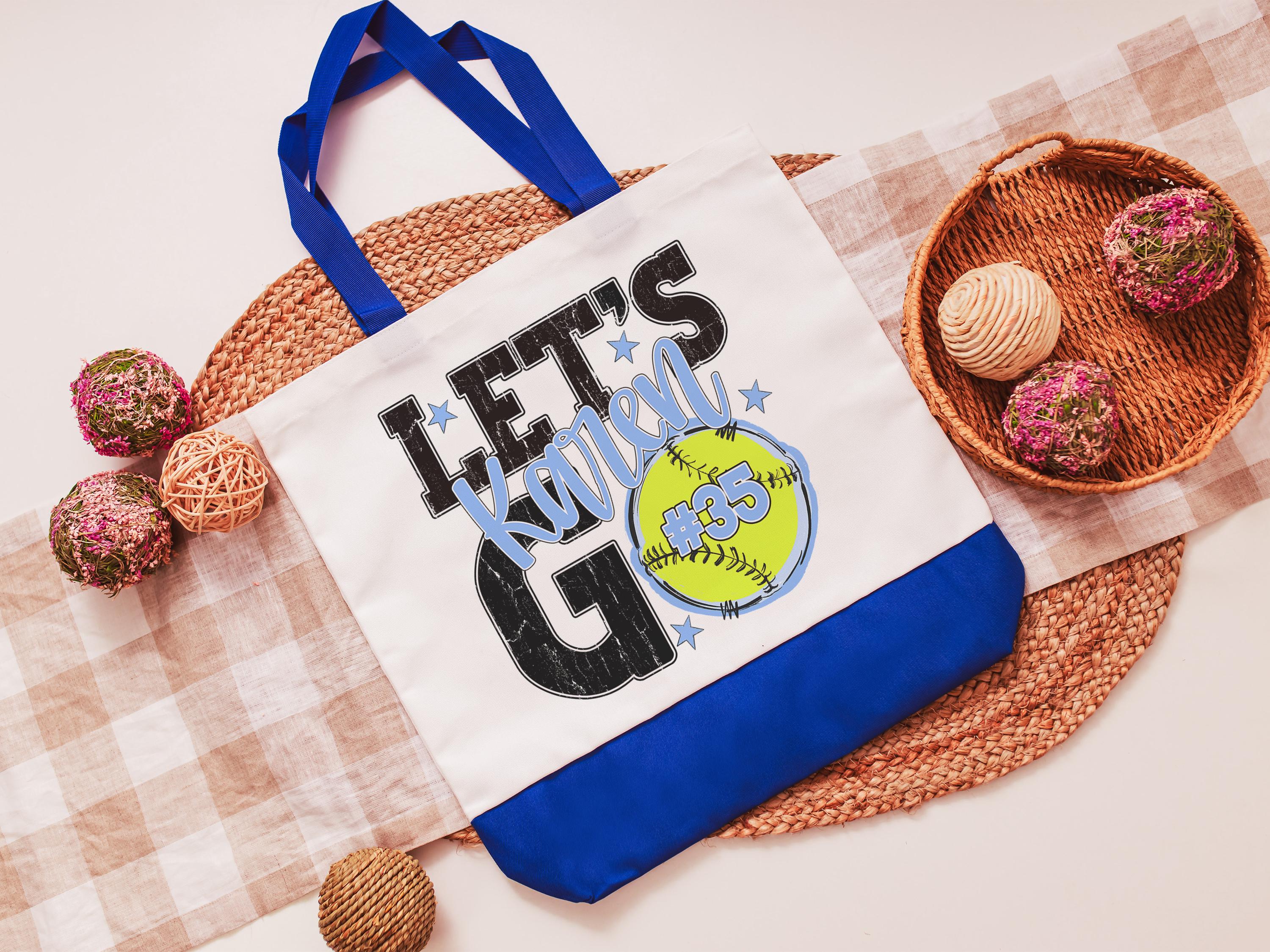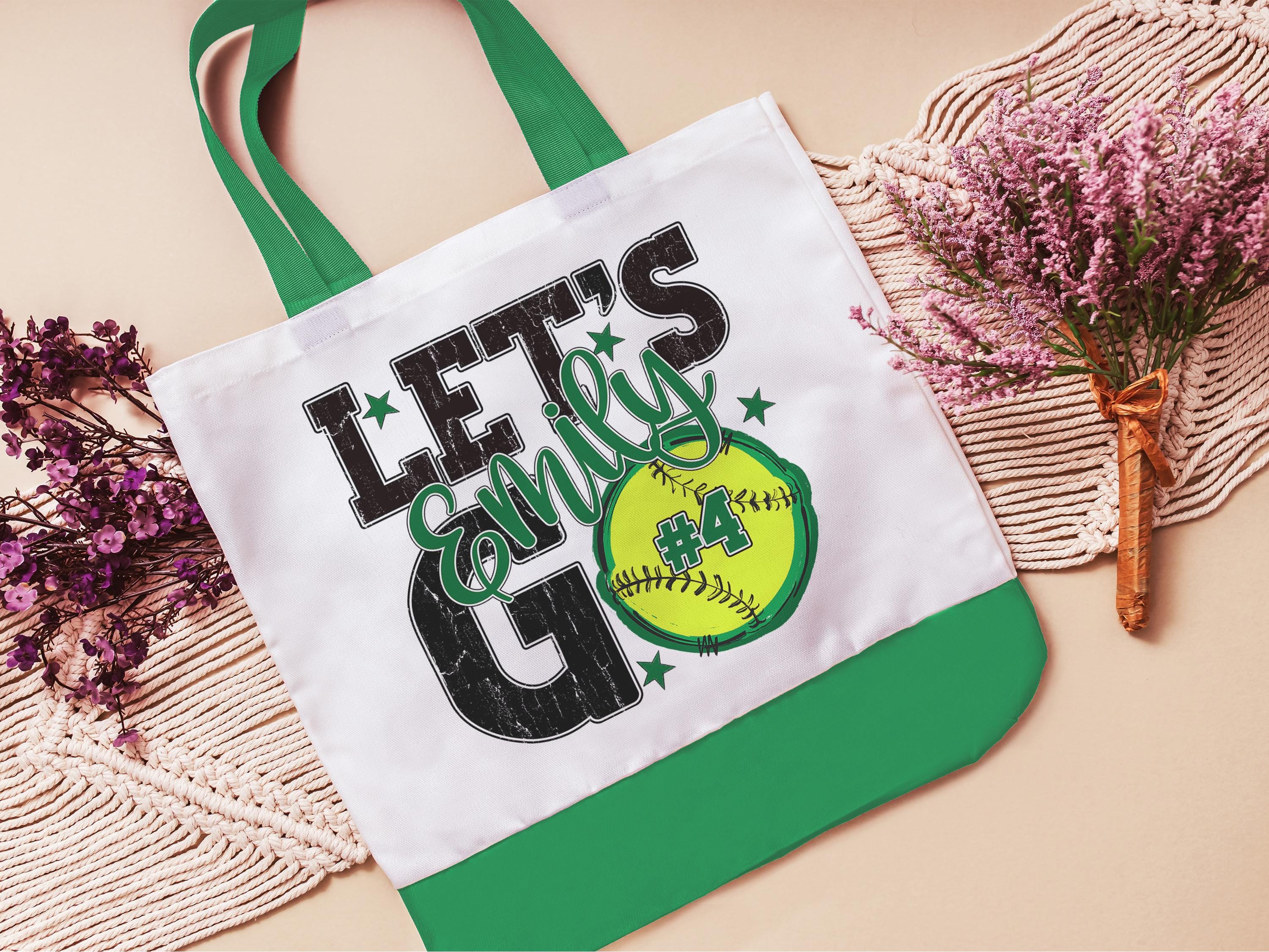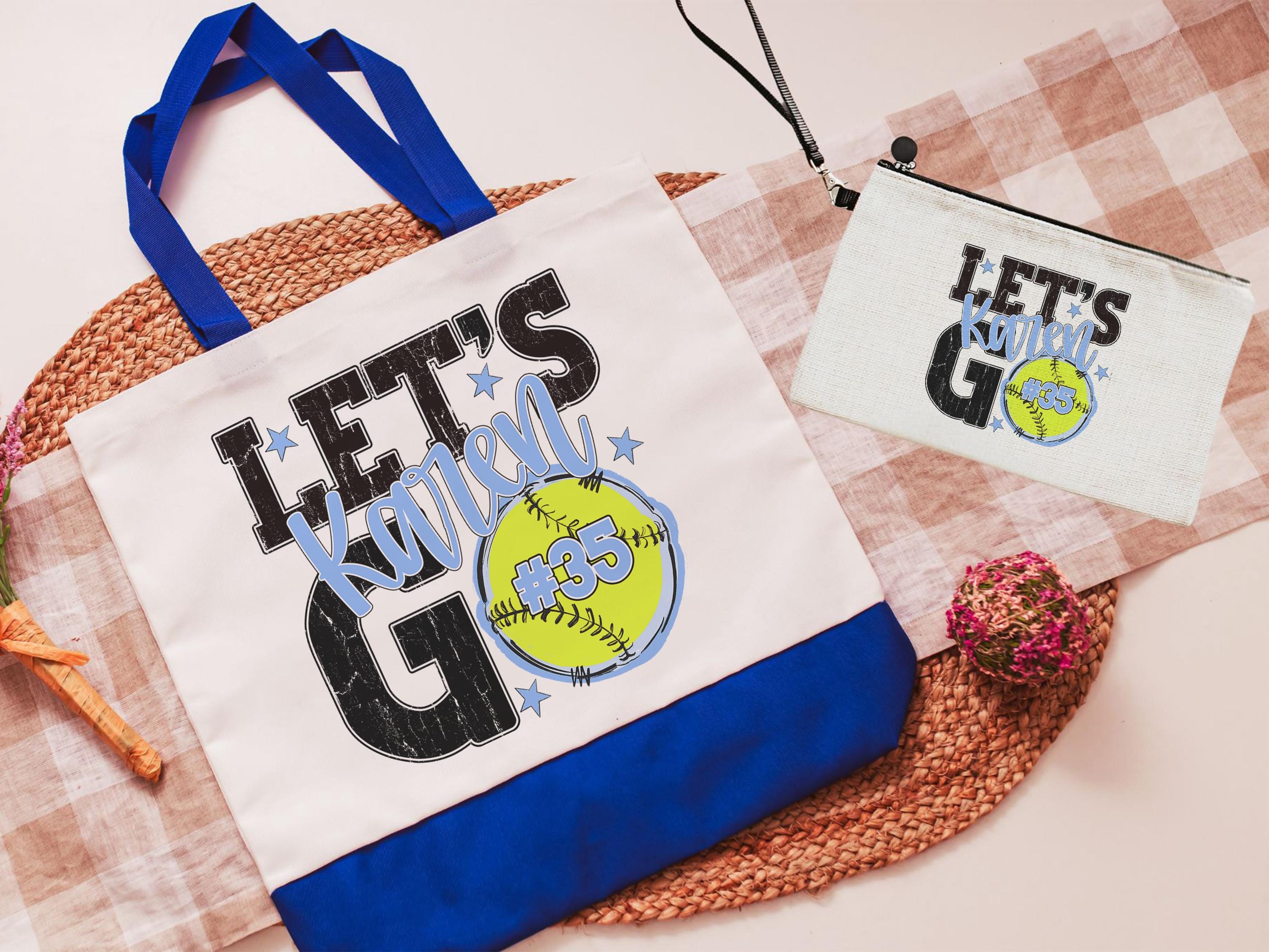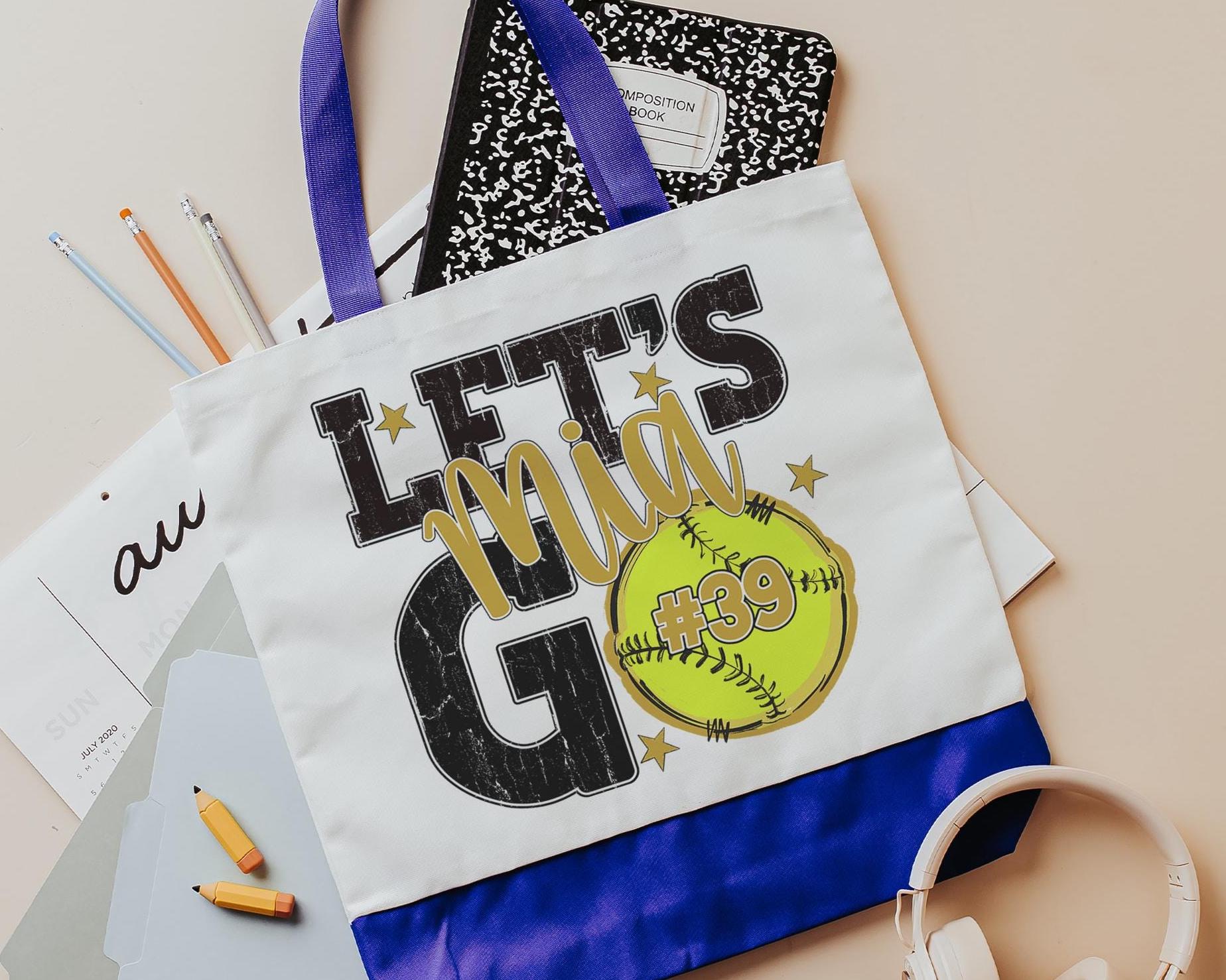 A personalized softball design adds a put-together look for tournaments, errands, or everyday use with a roomy tote bag. A matching wristlet with zipper is available to pair with it, making a great gift for her or any lady softball player who loves practical softball gifts.