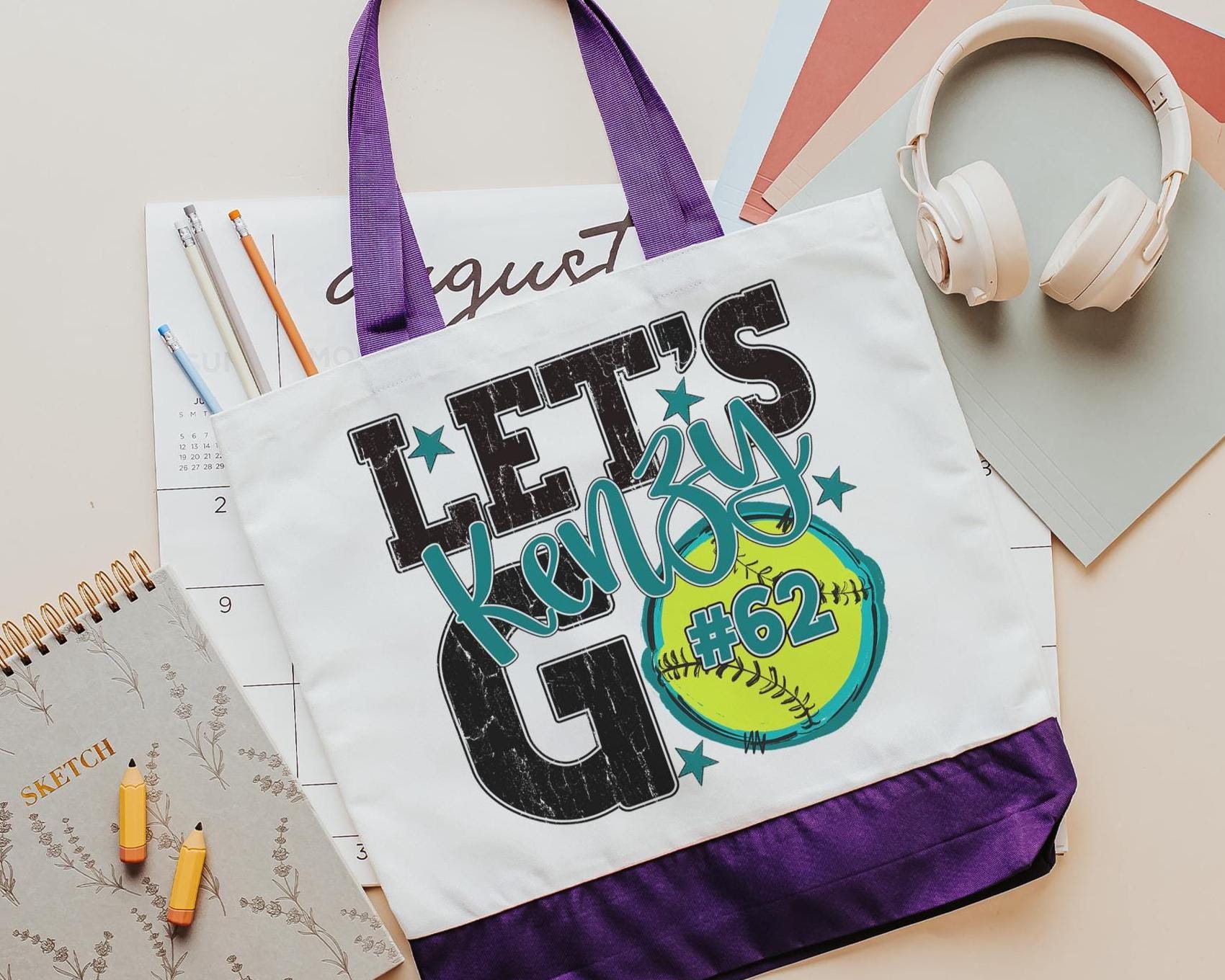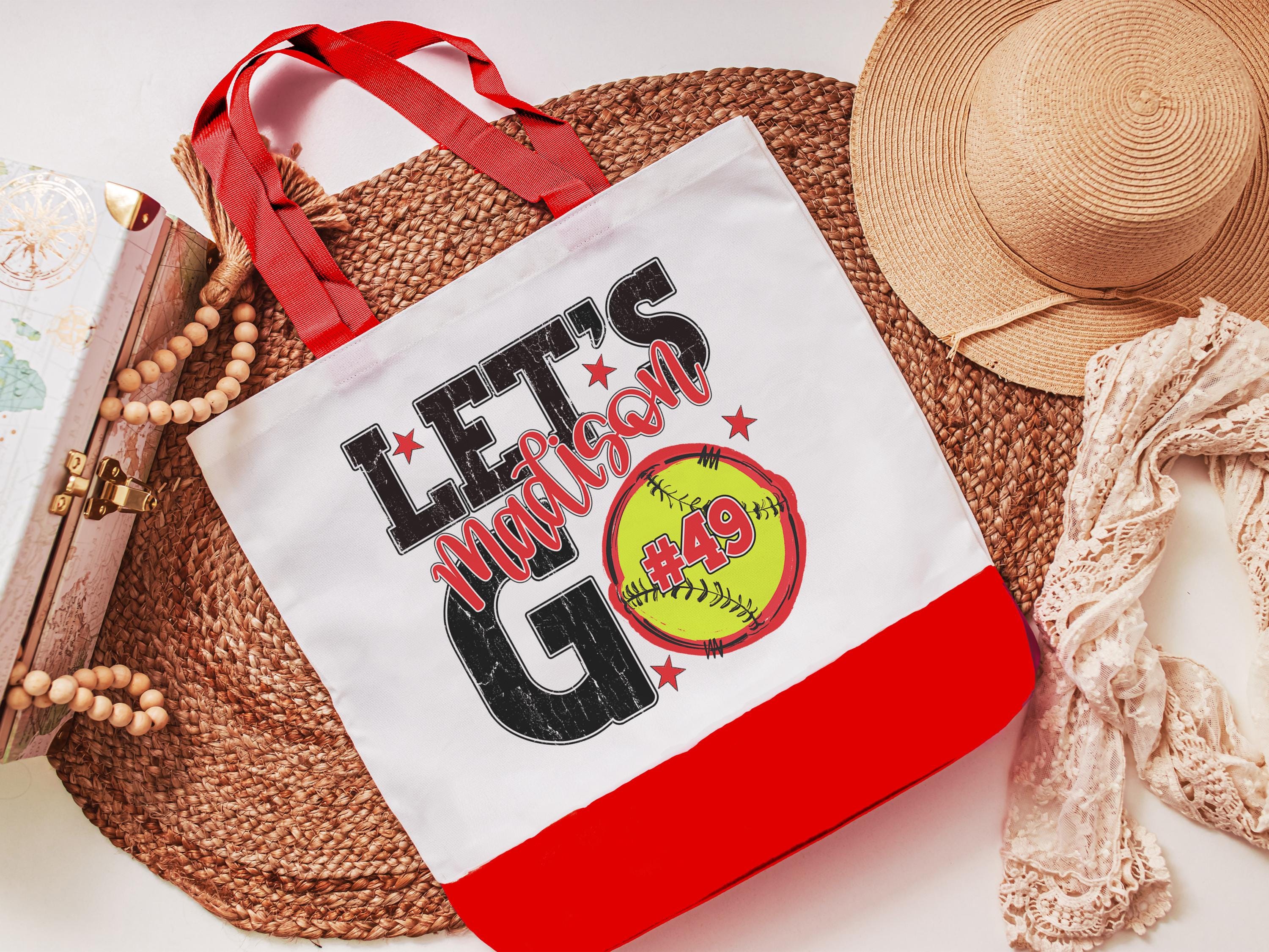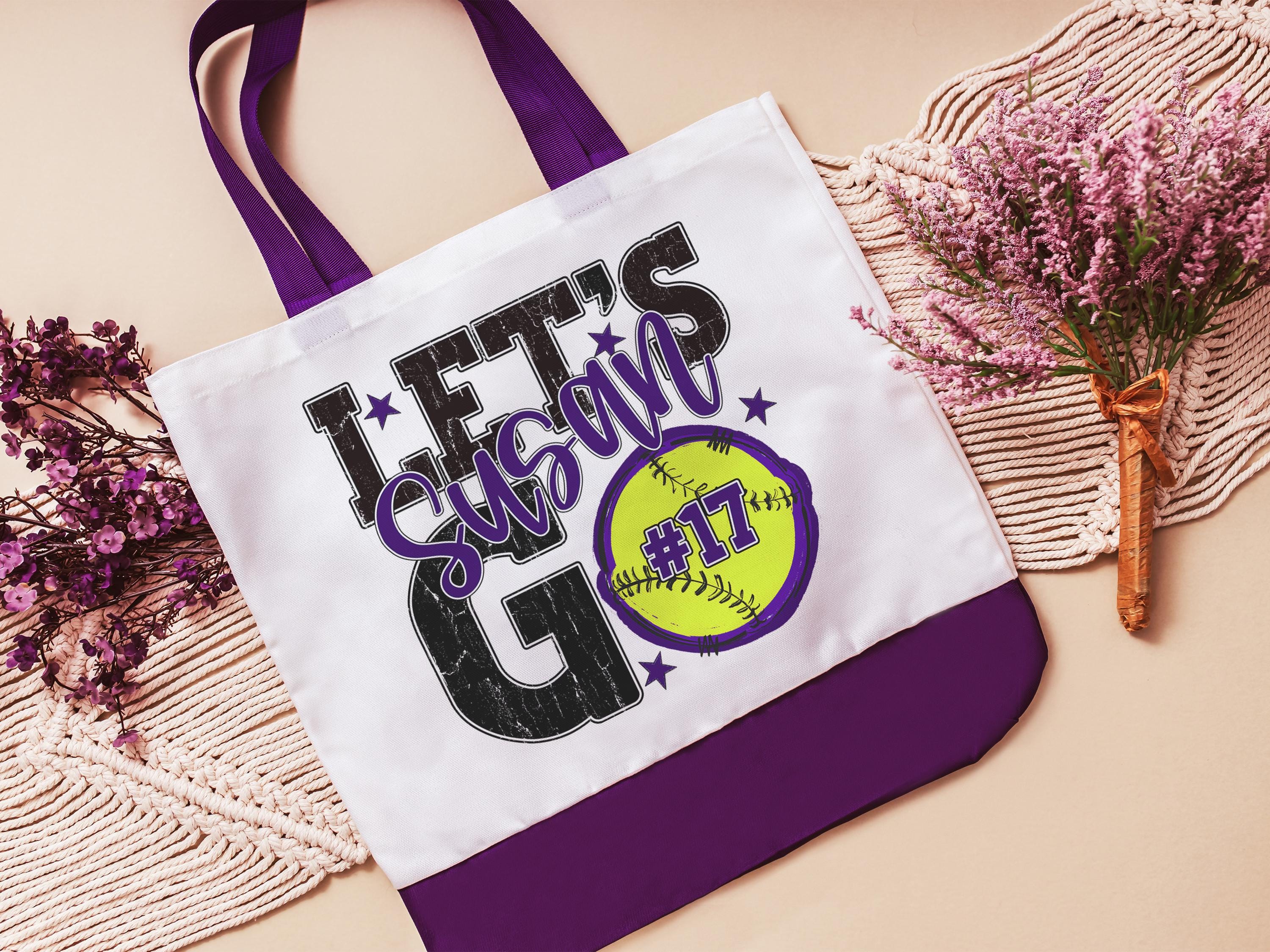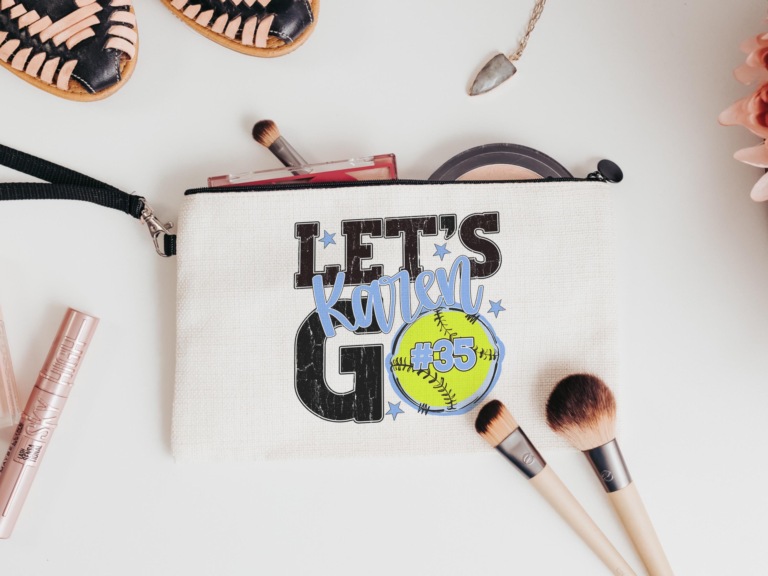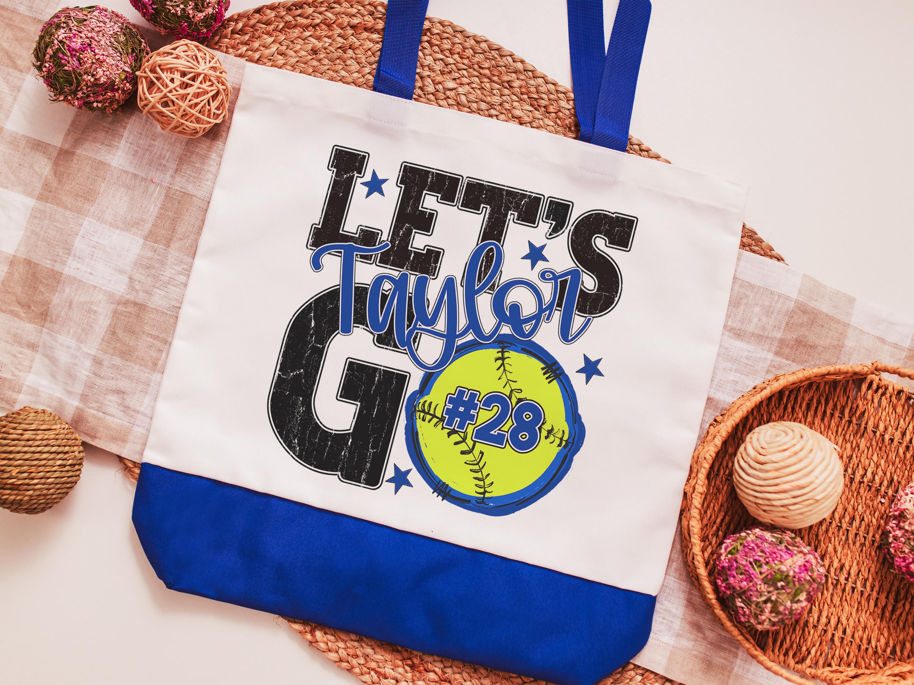 A personalized softball design adds a put-together look for tournaments, errands, or everyday use with a roomy tote bag. A matching wristlet with zipper is available to pair with it, making a great gift for her or any lady softball player who loves practical softball gifts.