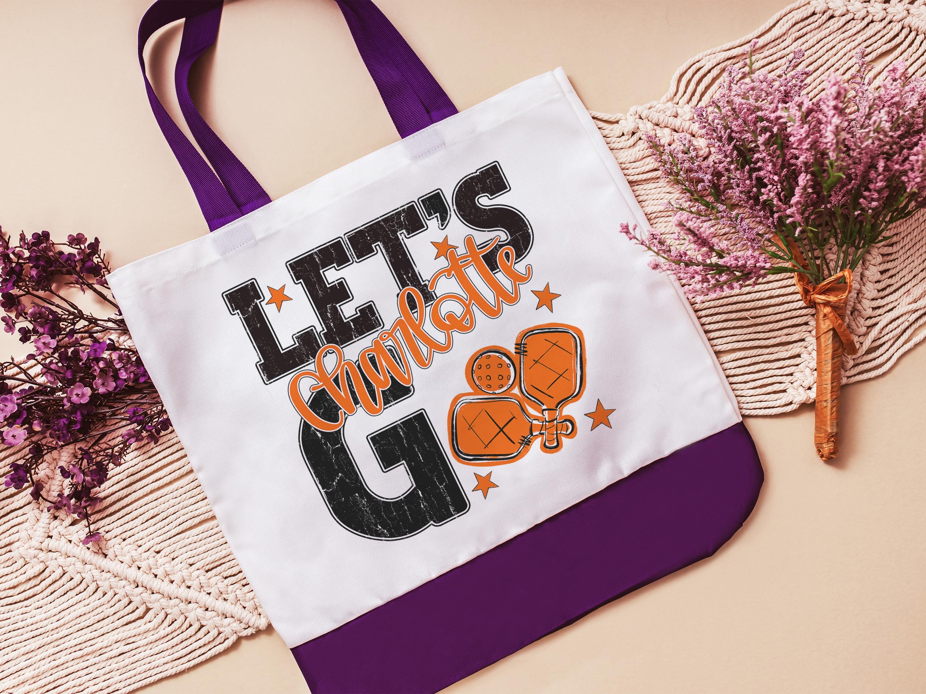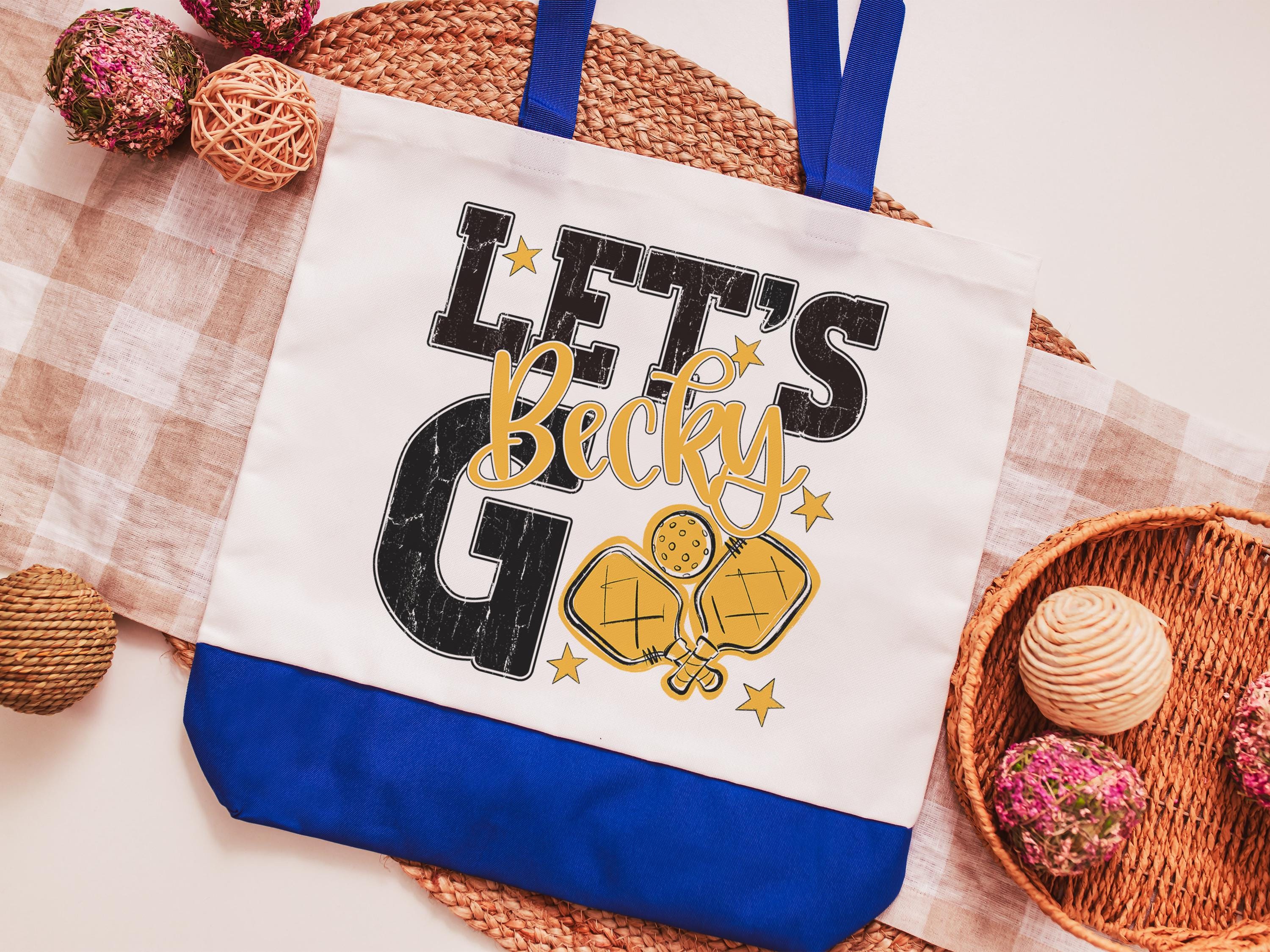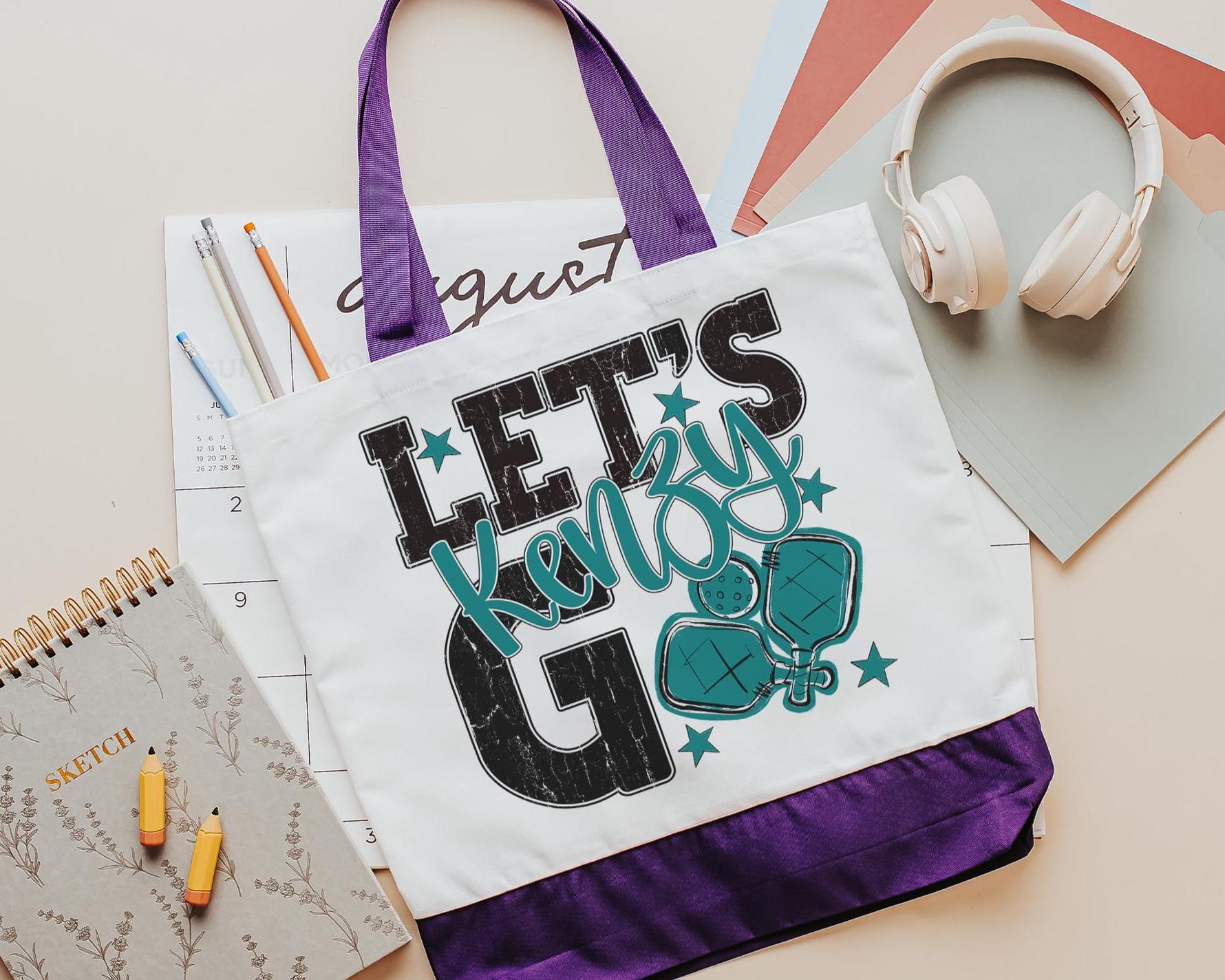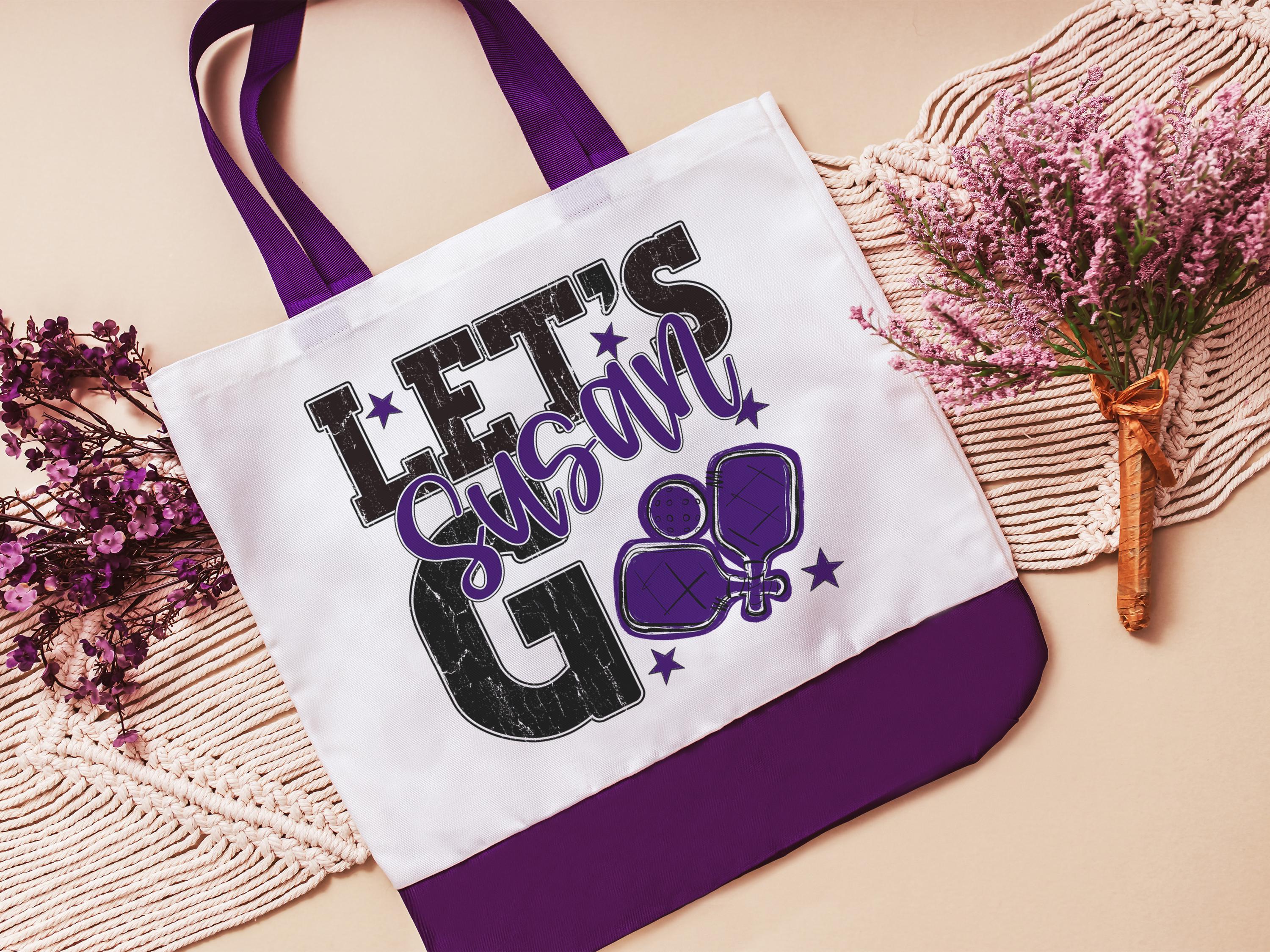A personalized lets go pickleball design adds a put-together look for tournaments, errands, or everyday use with a roomy tote bag. A matching wristlet with zipper is available to pair with it, making a great gift for her or any lady pickleball player who loves practical pickleball gifts.