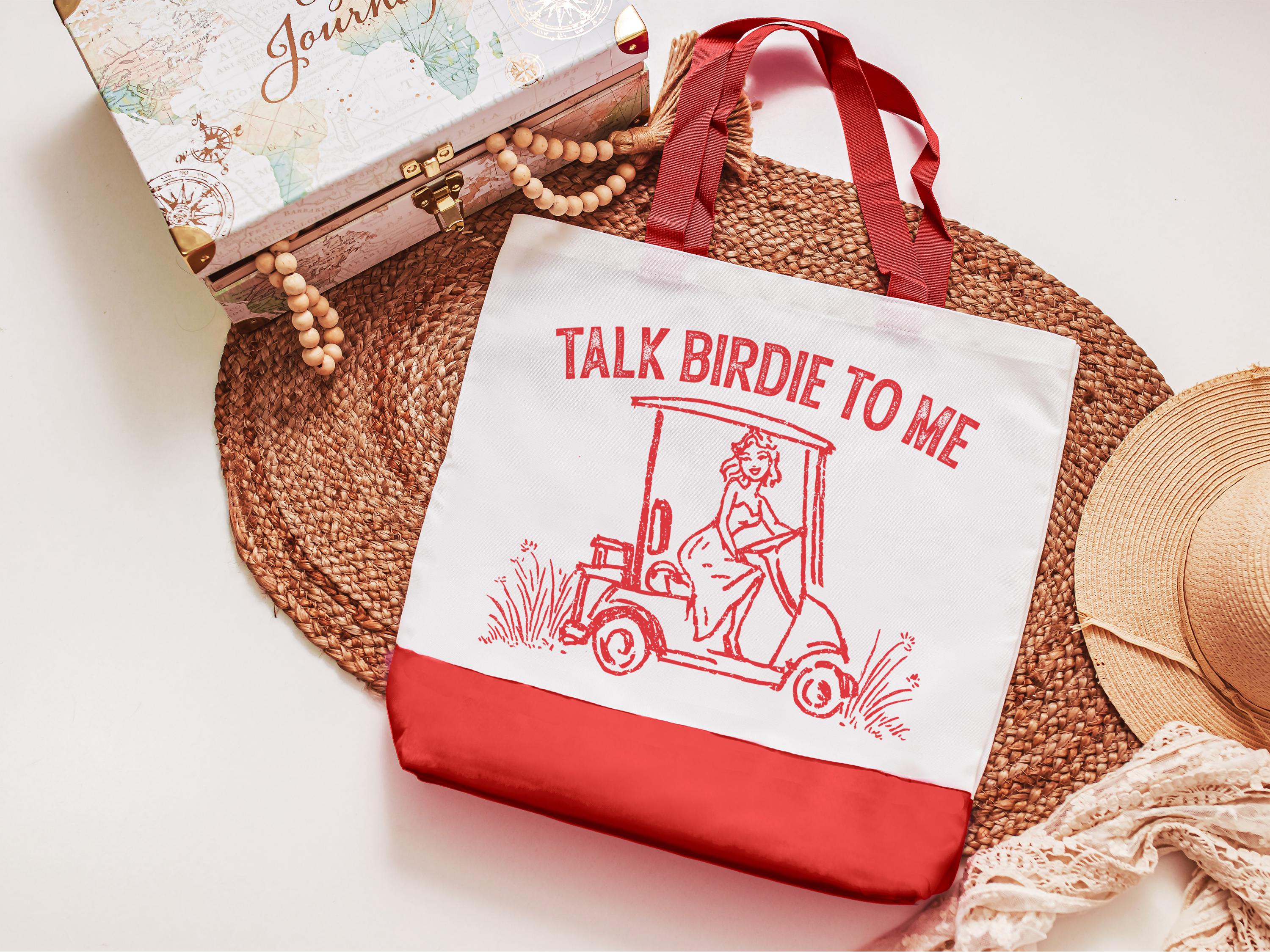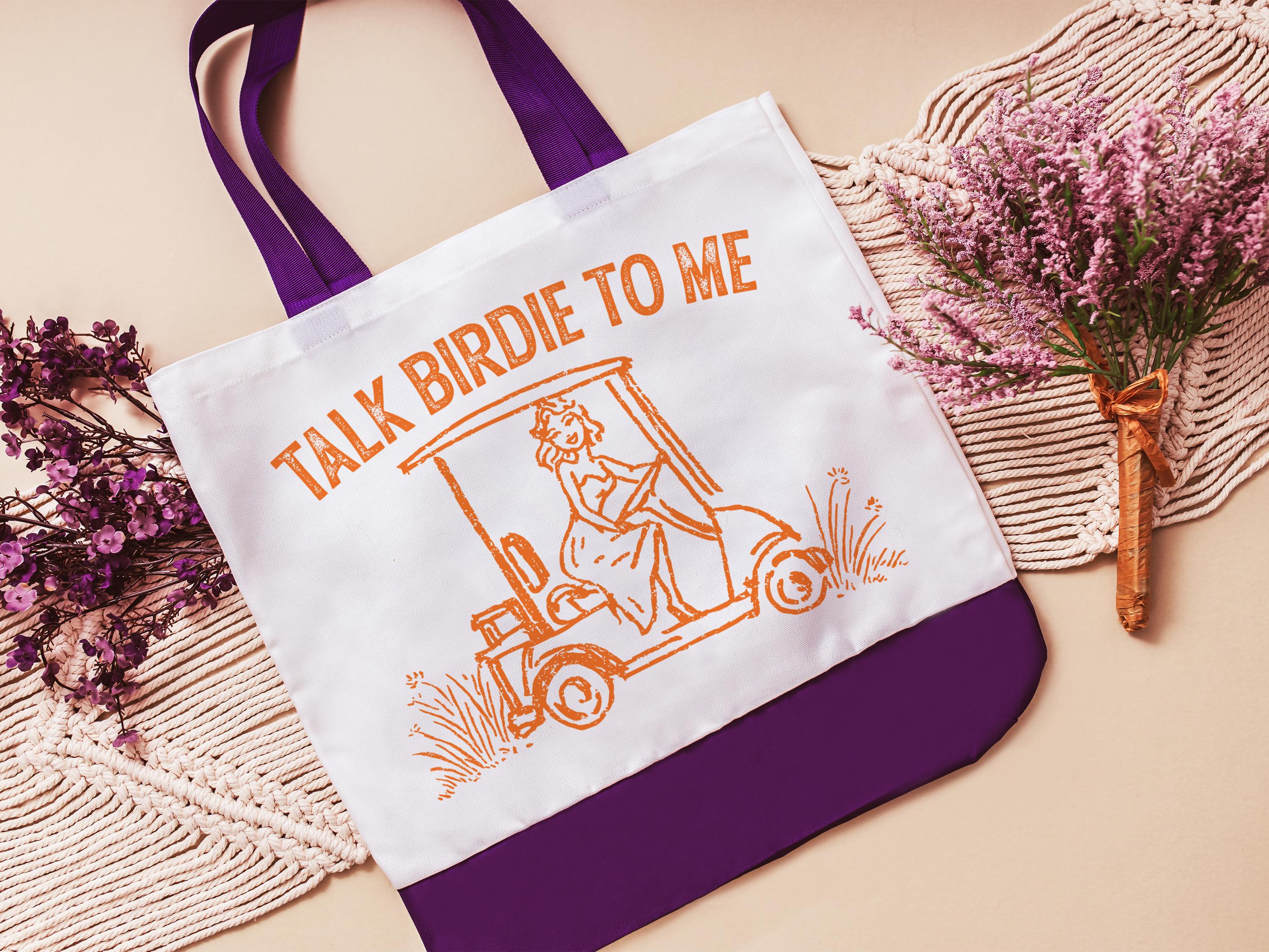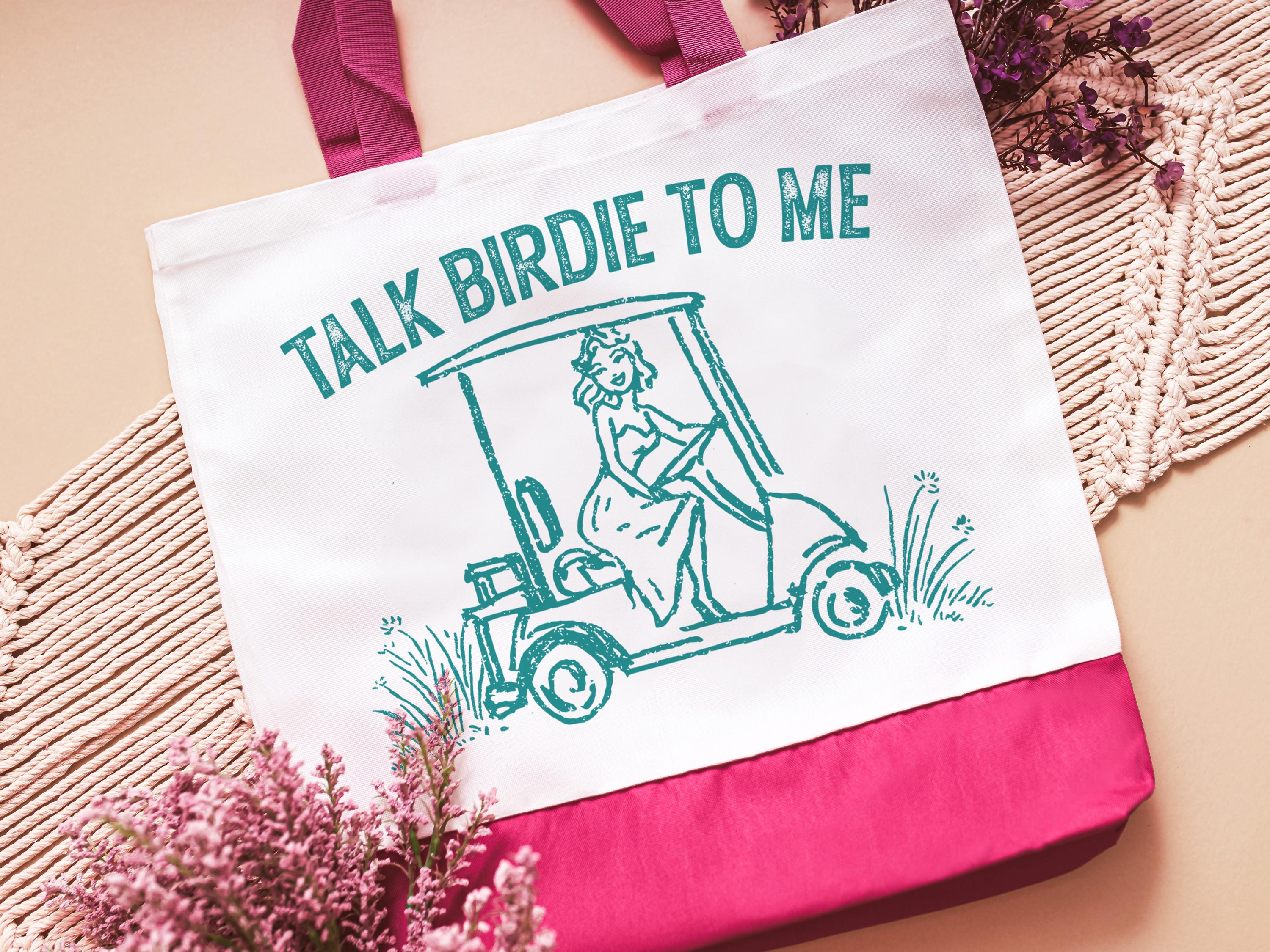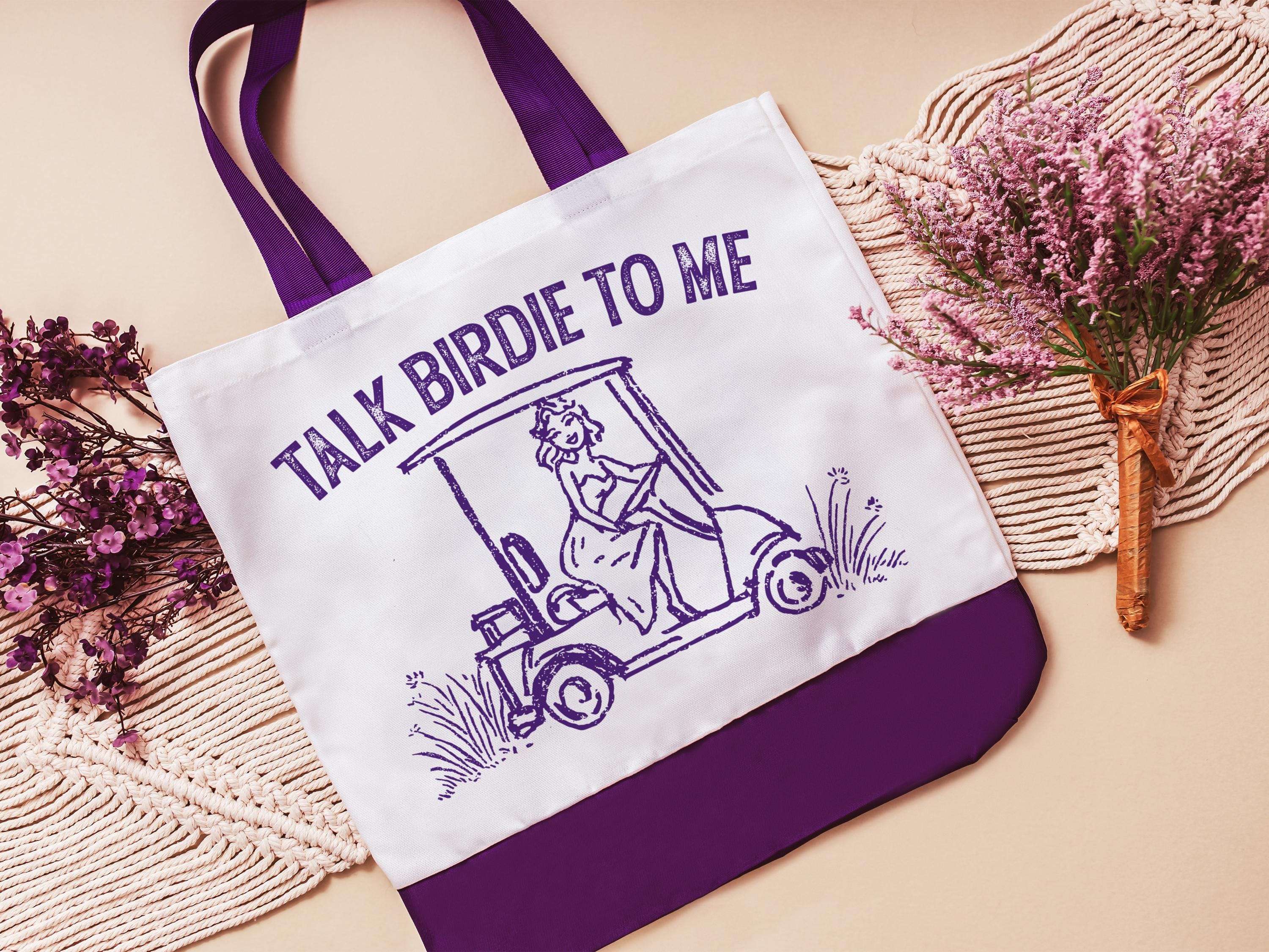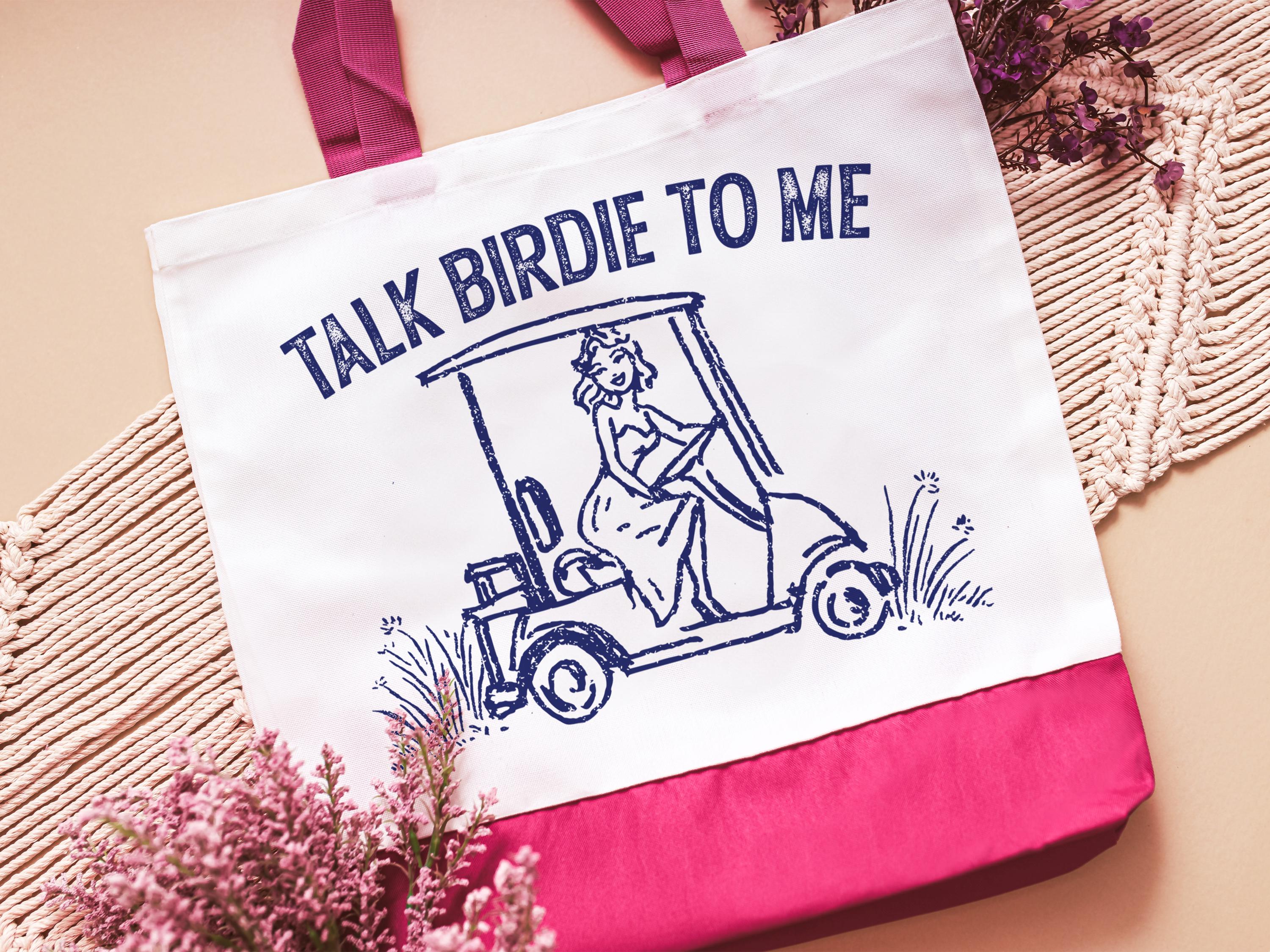 A columbia blue talk birdie to me sassy design makes a great tote for the course, tournaments, or everyday errands. A great pick for golf gifts, with a matching wristlet with zipper available separately or together as a set.