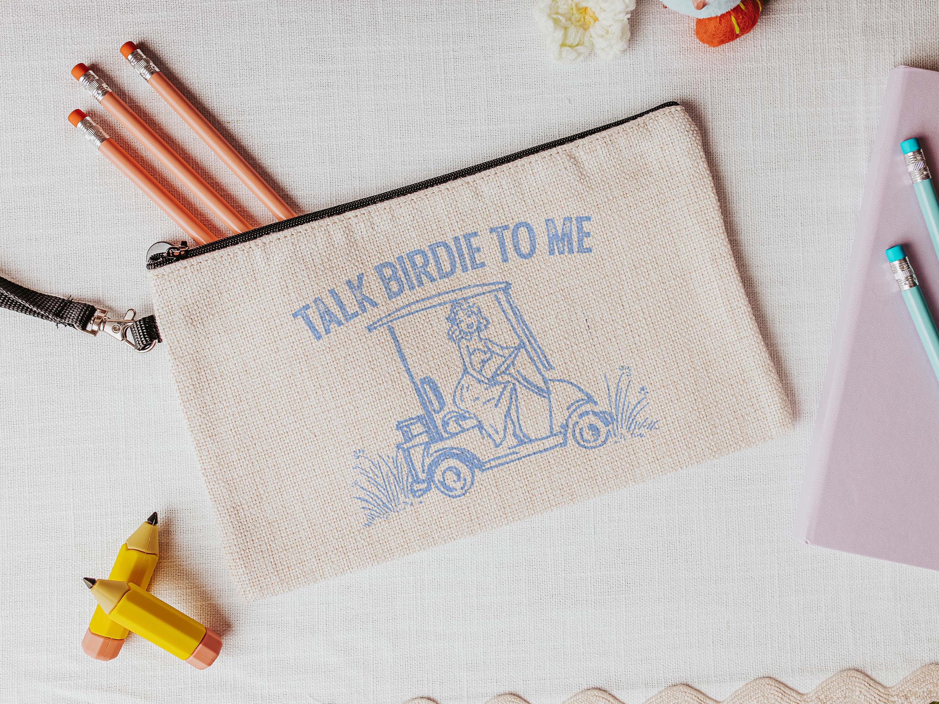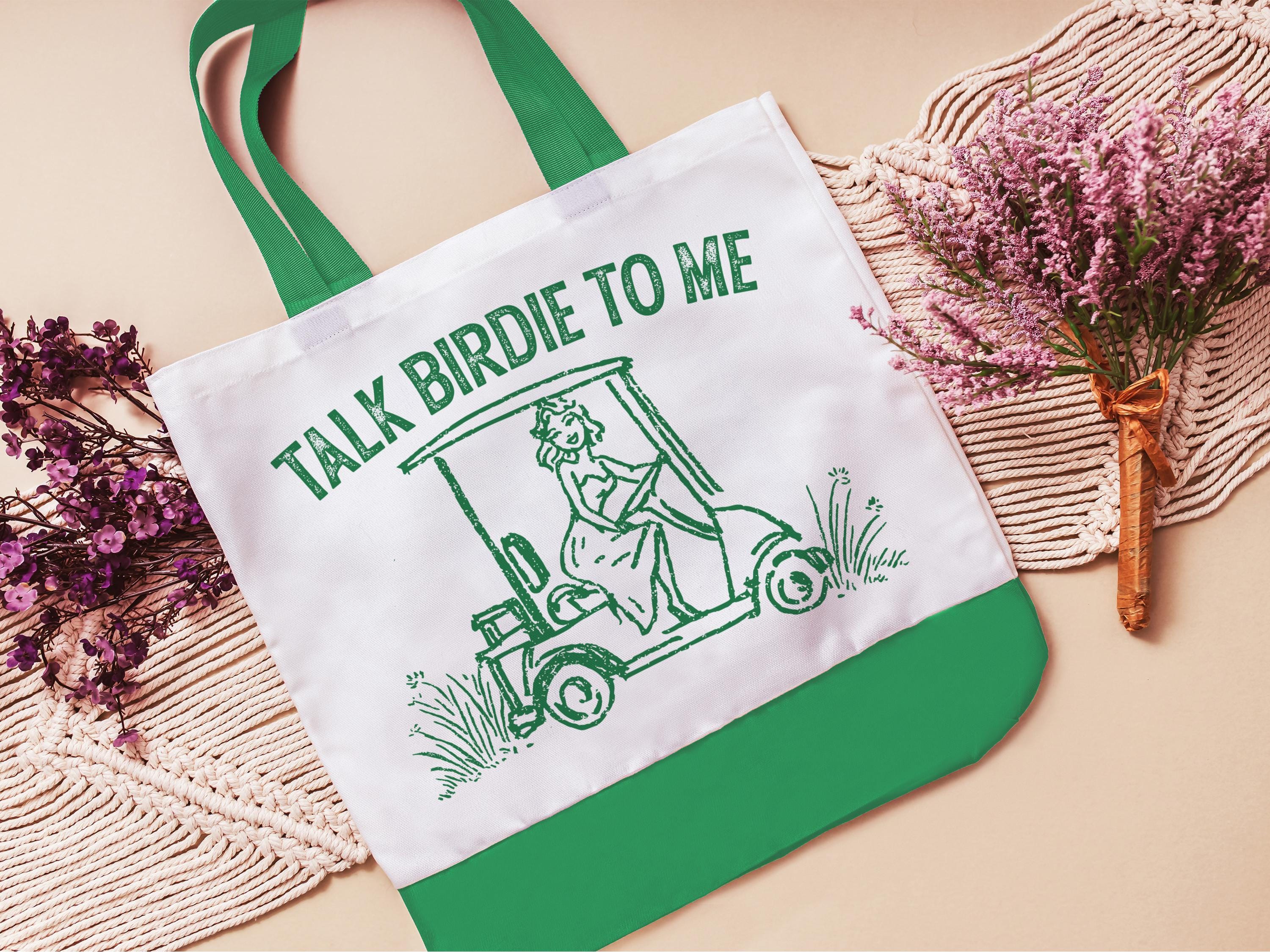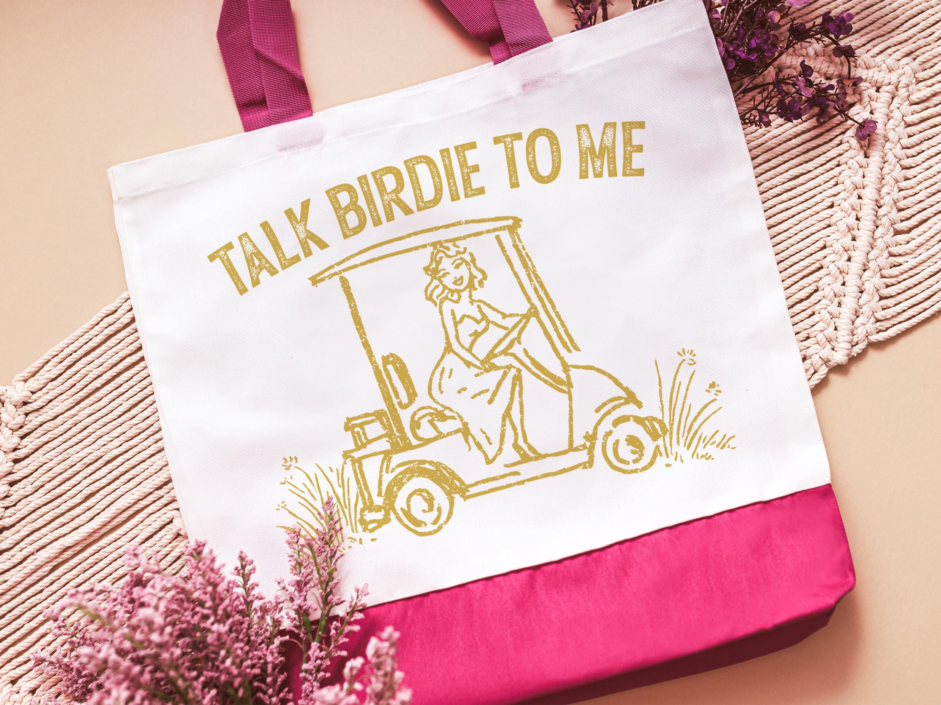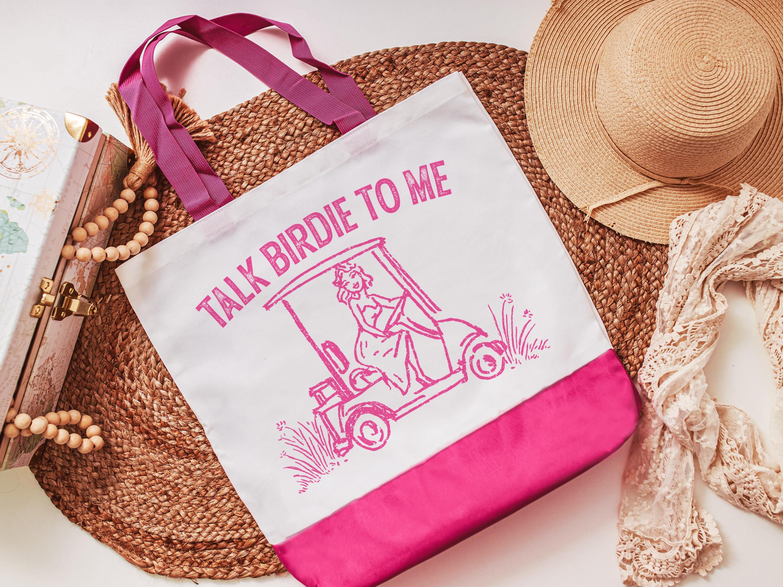 A columbia blue talk birdie to me sassy design makes a great tote for the course, tournaments, or everyday errands. A great pick for golf gifts, with a matching wristlet with zipper available separately or together as a set.