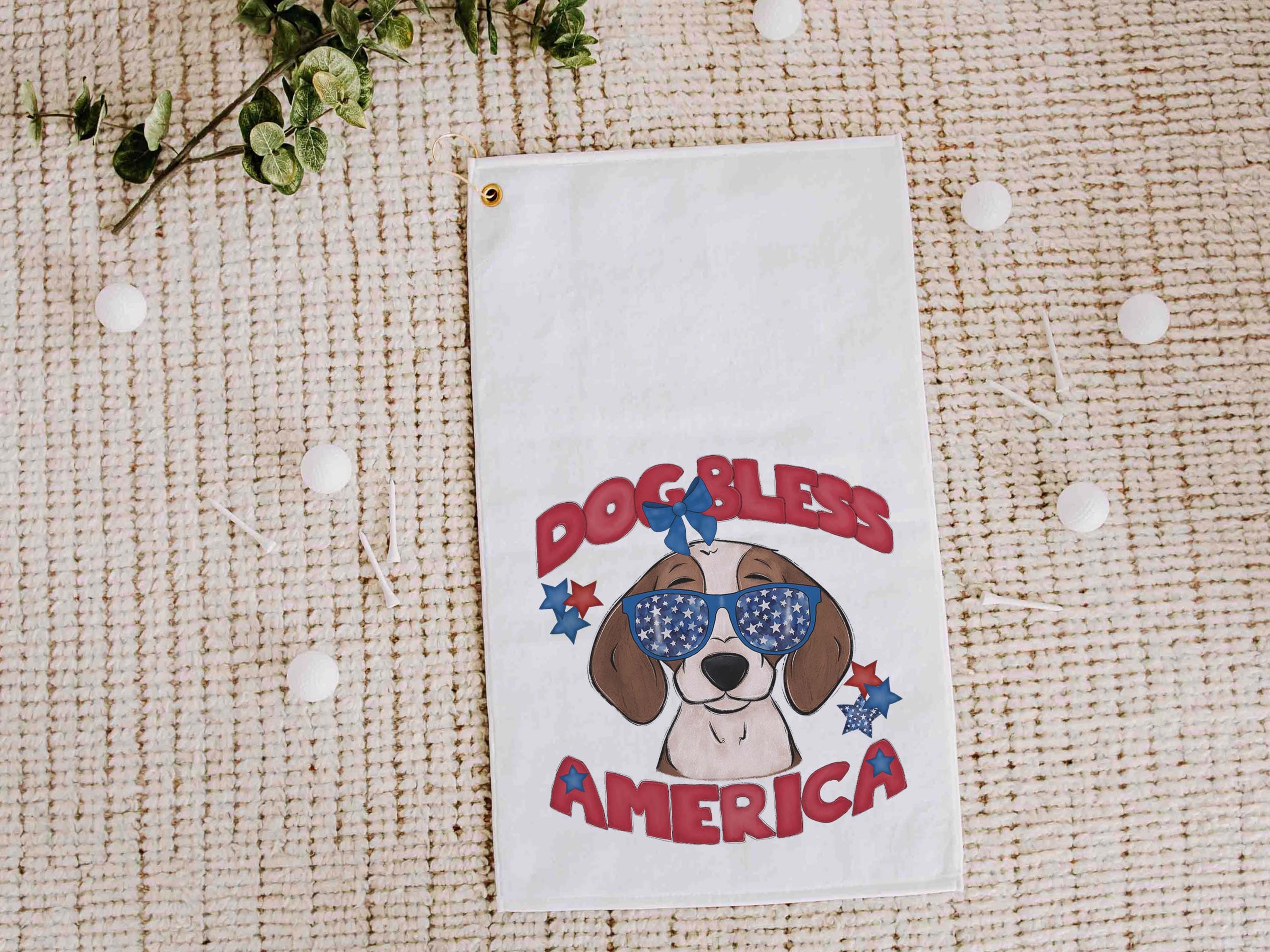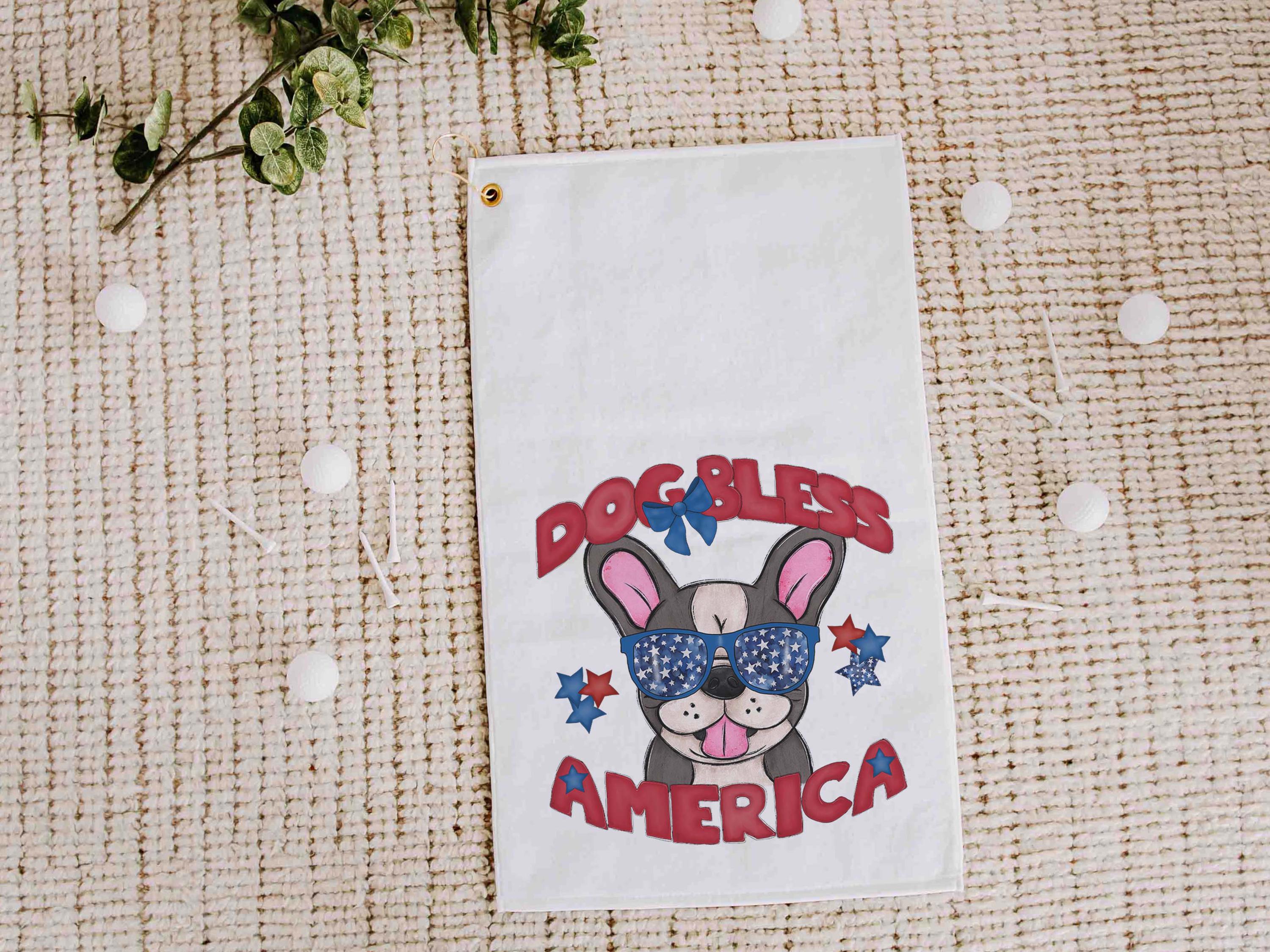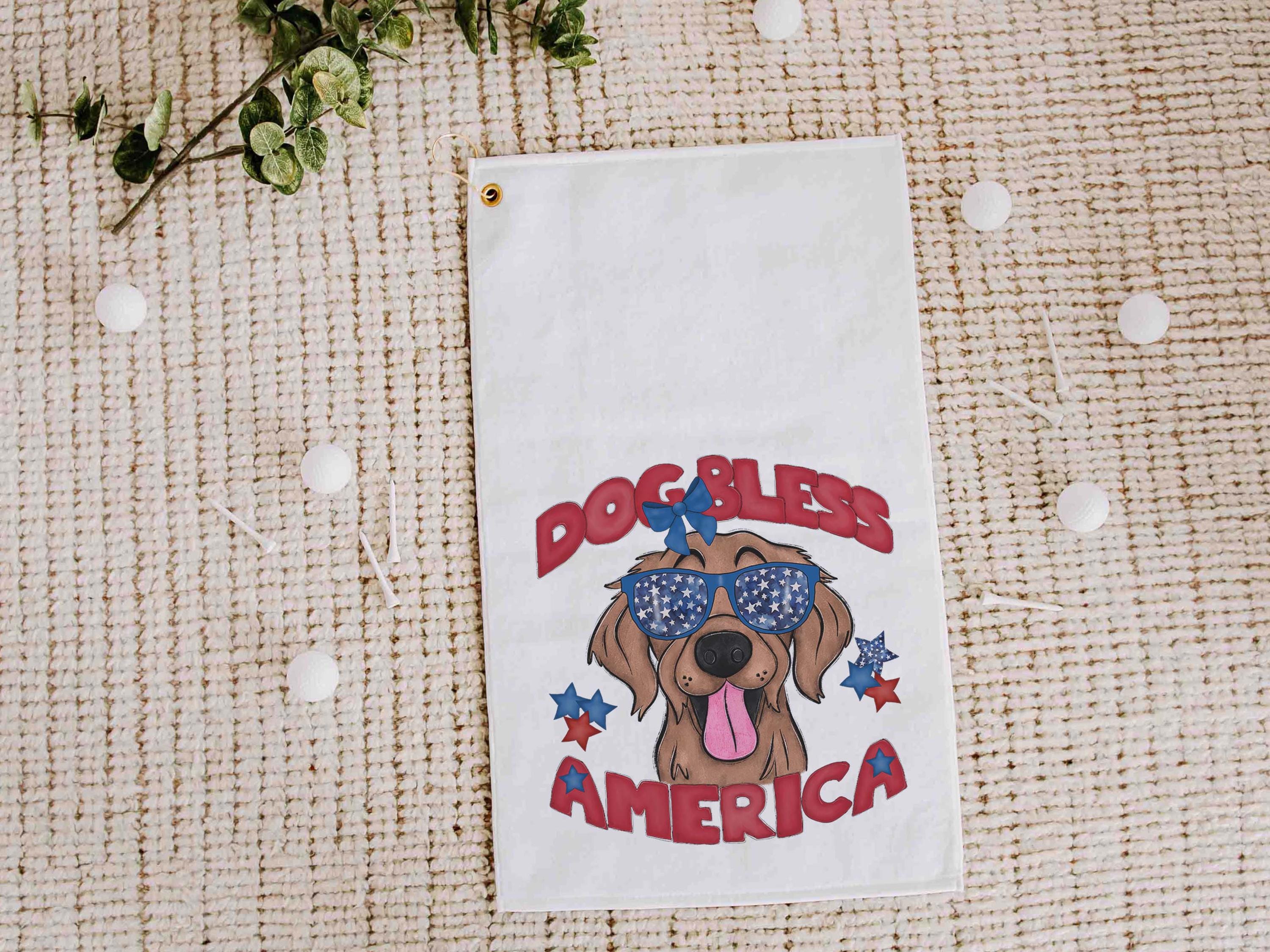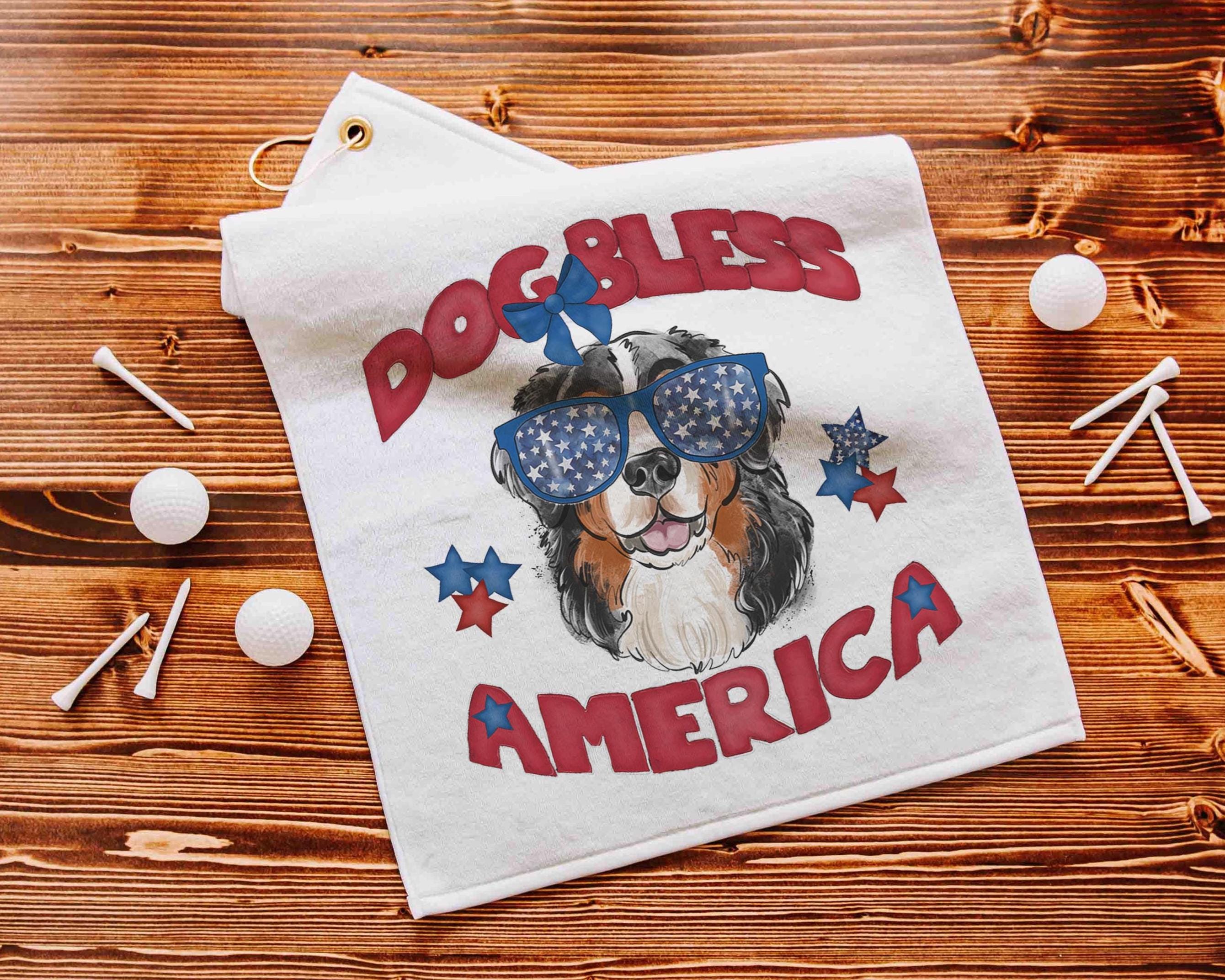Dog bless America with a Bernese Mountain Dog gives a patriotic look on the course or clipped to a golf bag. A great pick for golf gifts and a fun choice for step dads or golfers who love dog-themed gear.