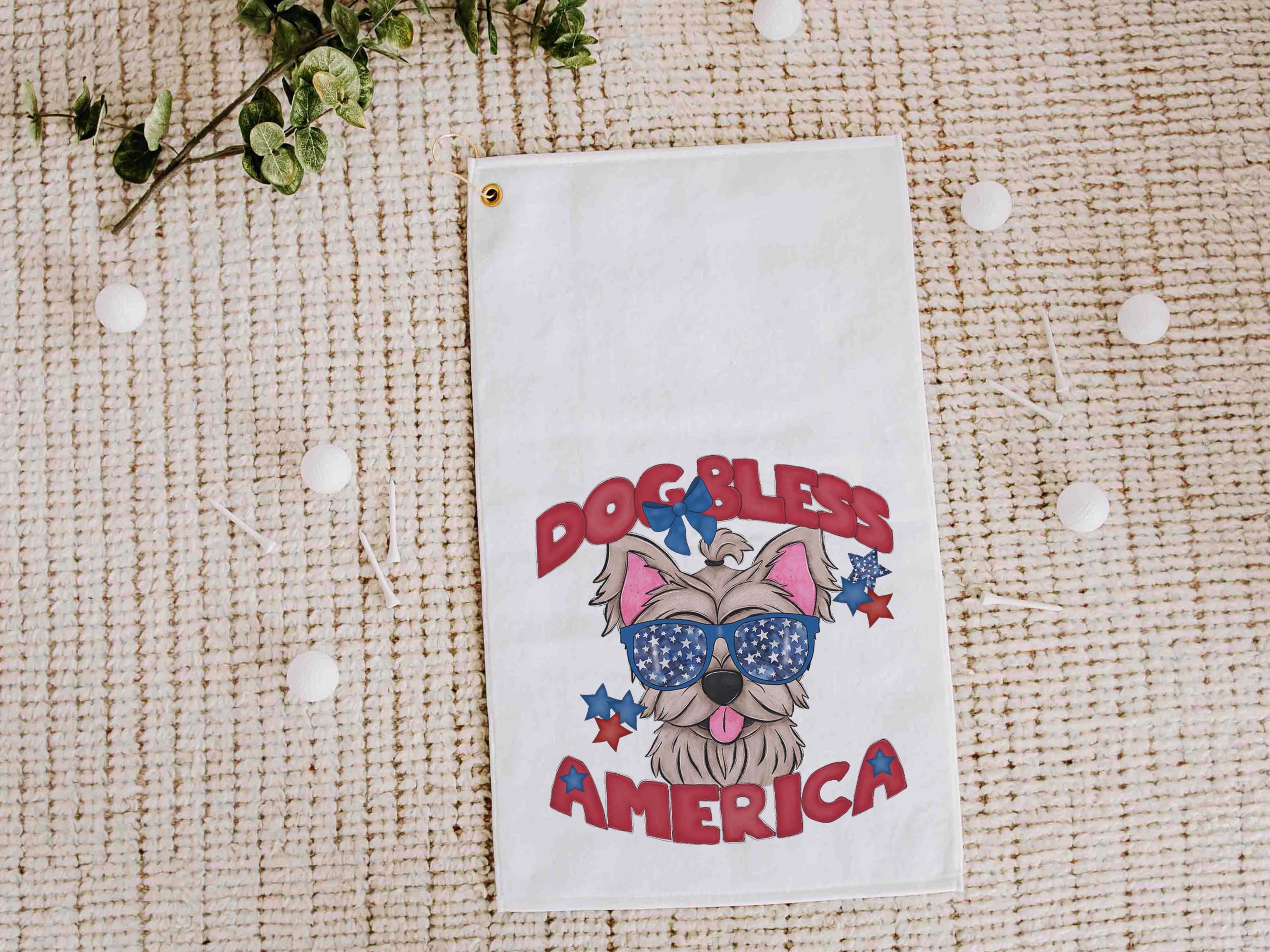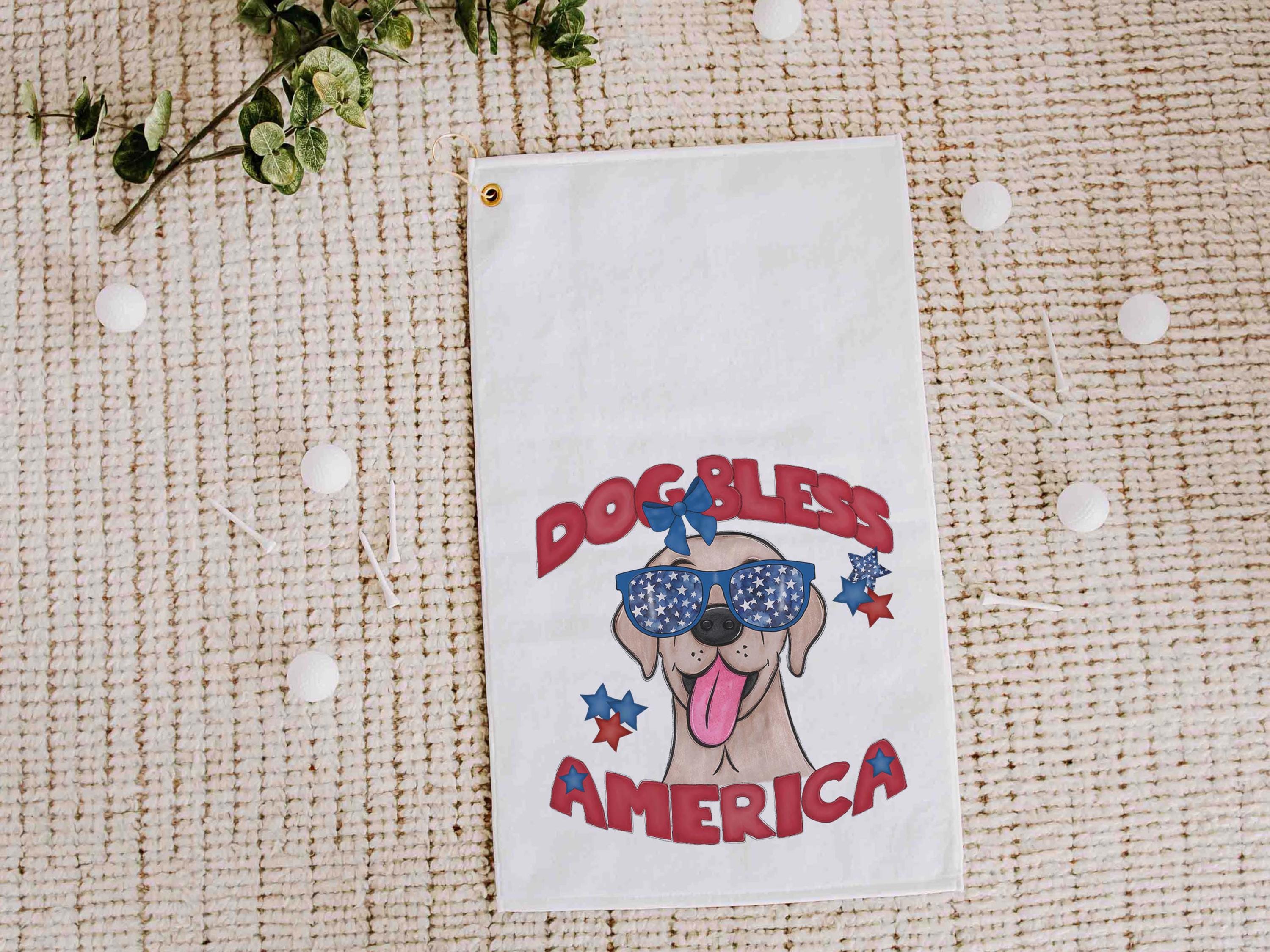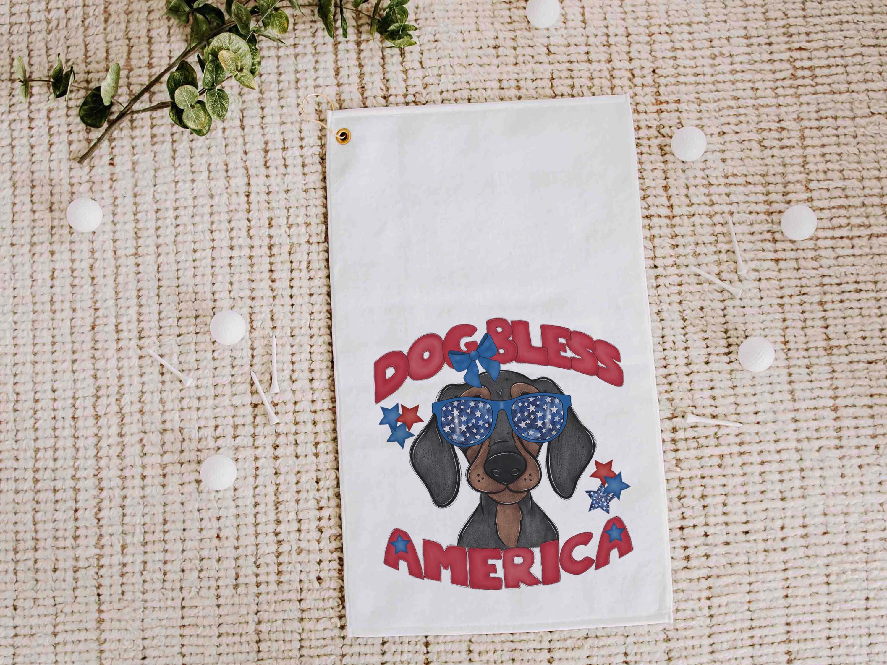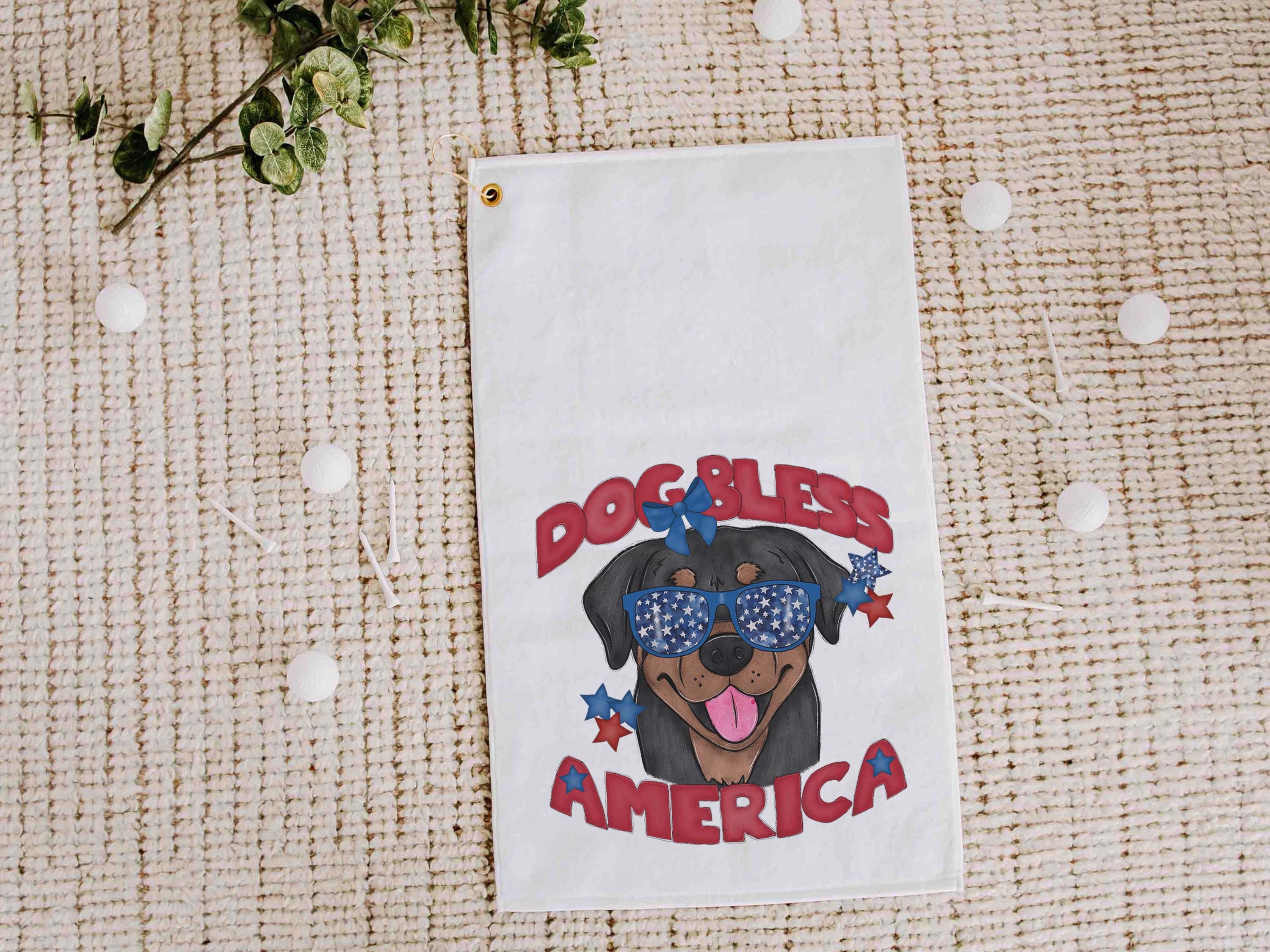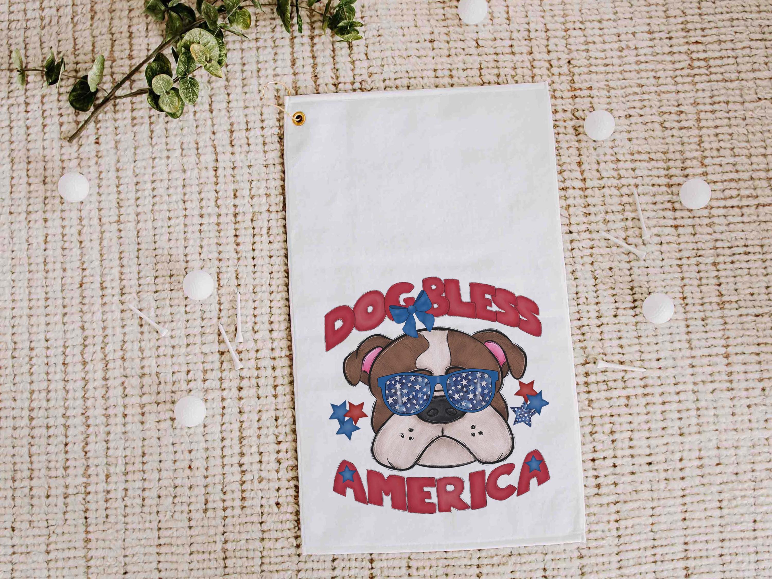 Dog bless America with a Bernese Mountain Dog gives a patriotic look on the course or clipped to a golf bag. A great pick for golf gifts and a fun choice for step dads or golfers who love dog-themed gear.