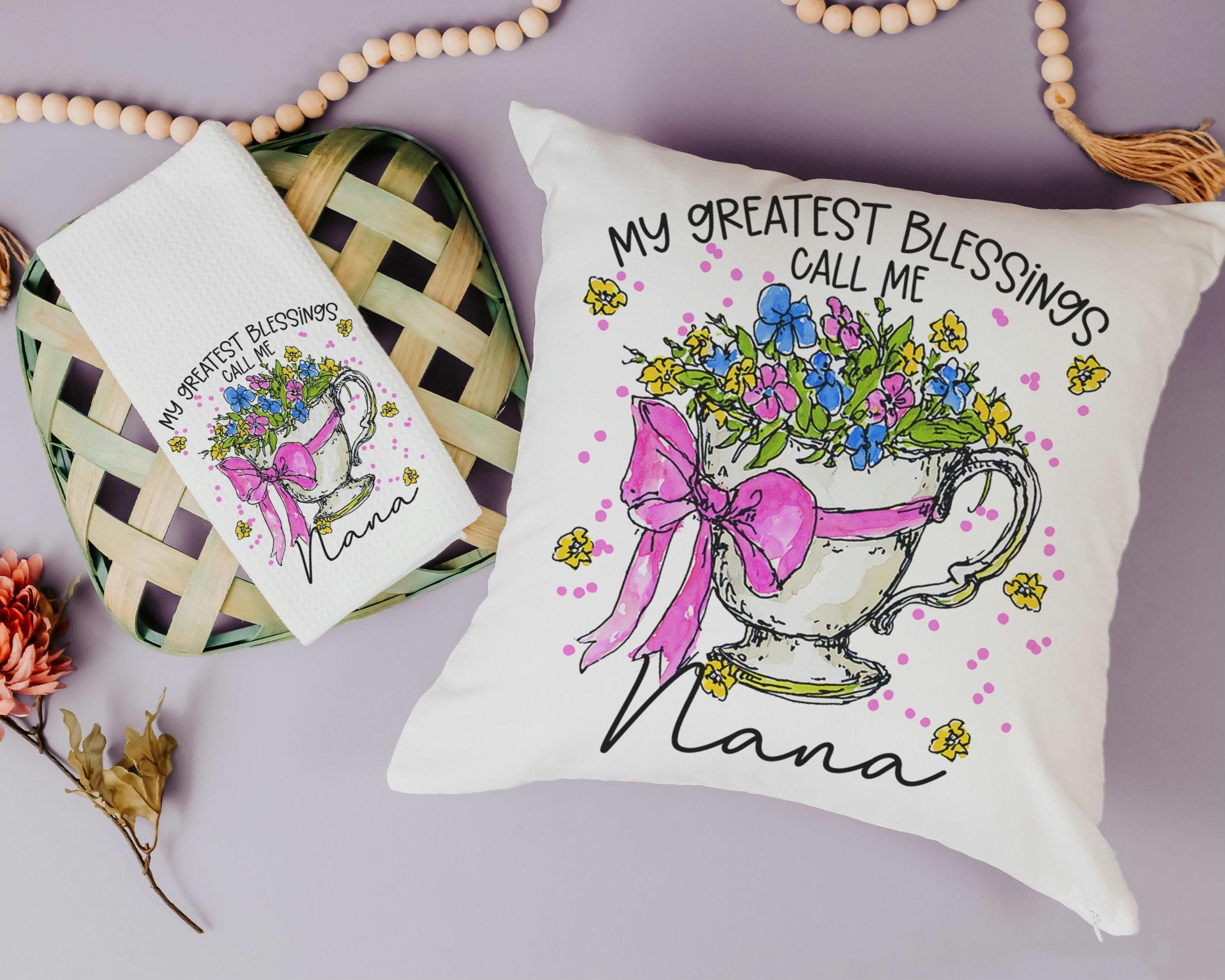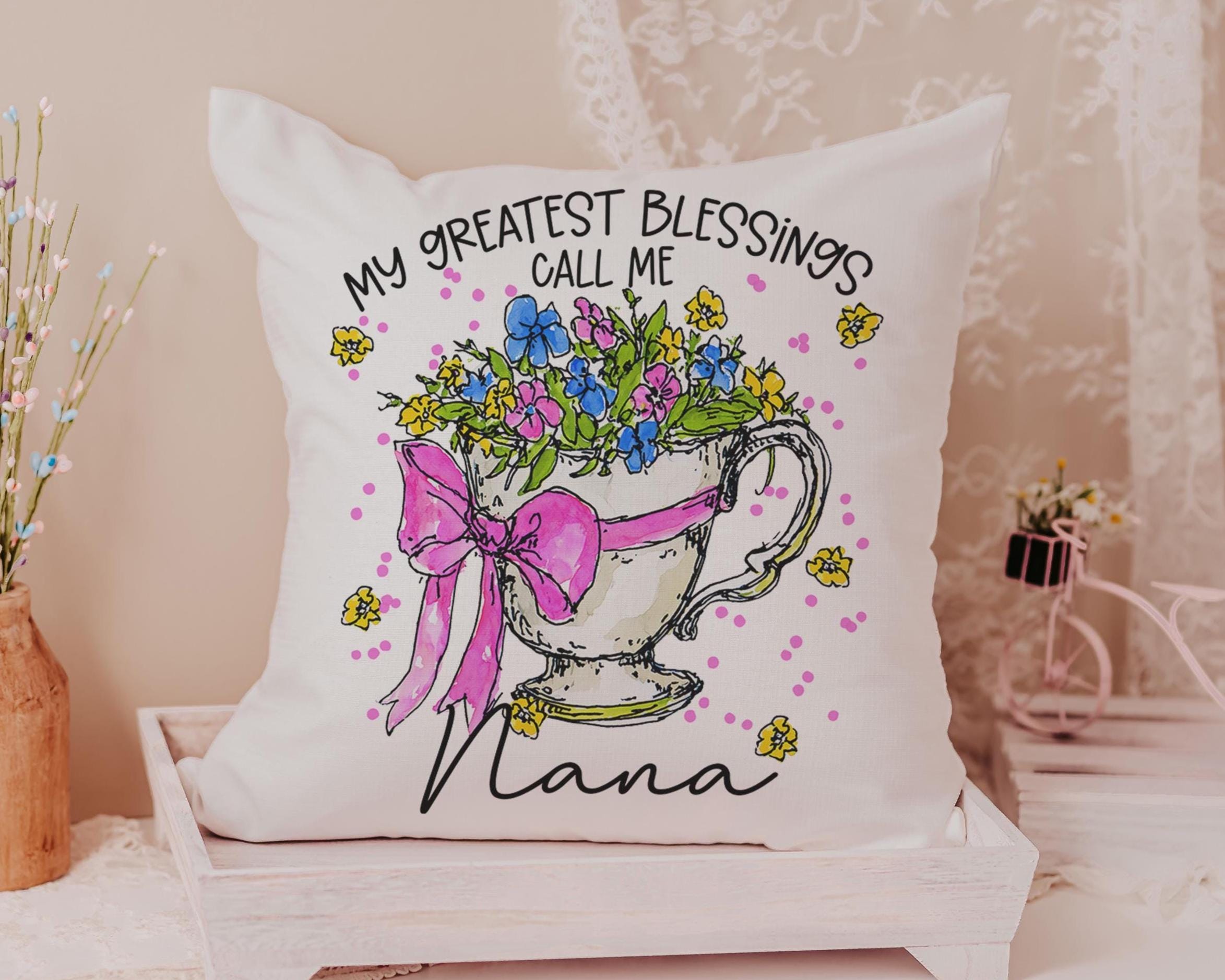 Celebrate the love of a nana or any grandma with this Personalized my greatest blessings floral throw pillow. A sentimental Mother’s Day gift from grandkids, it’s perfect for Nana, Mimi, or Mom. This keepsake is a heartfelt way to show appreciation that she will treasure for years to come.