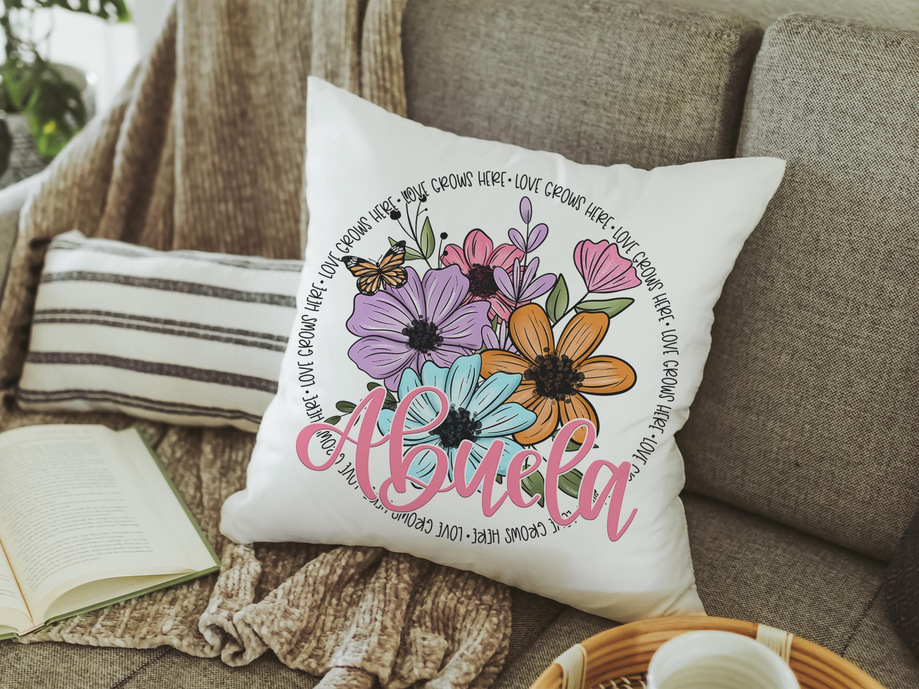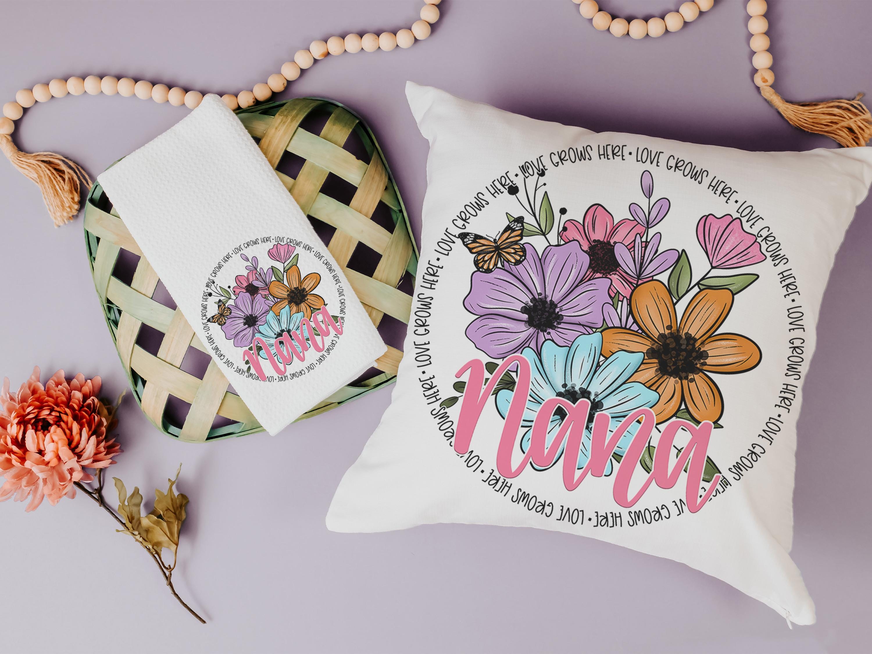 Celebrate the love of a nana or any grandma with this Personalized love grows here floral throw pillow. A sentimental Mother’s Day gift from grandkids, it’s perfect for Nana, Mimi, or Mom. This keepsake is a heartfelt way to show appreciation that she will treasure for years to come.