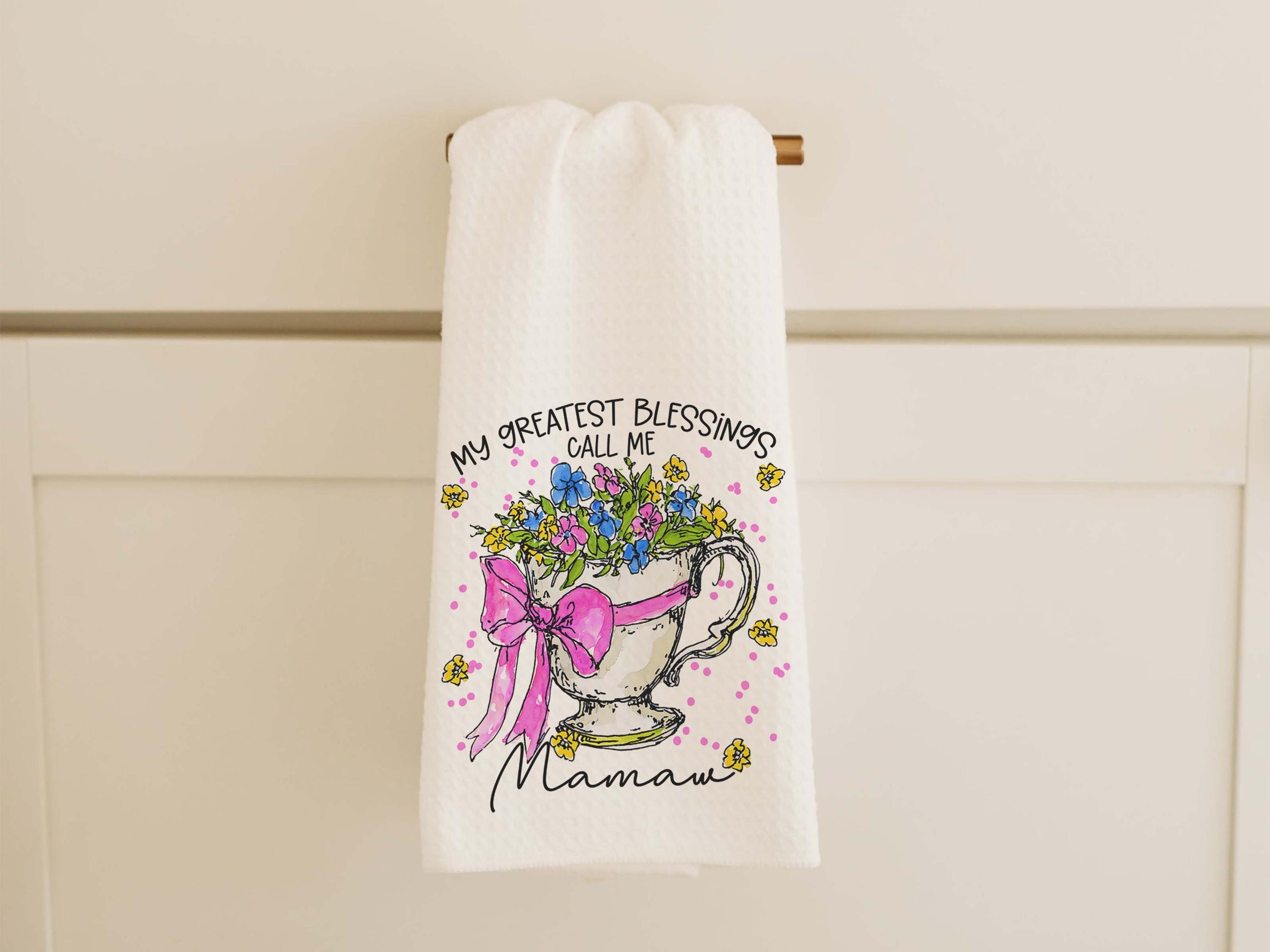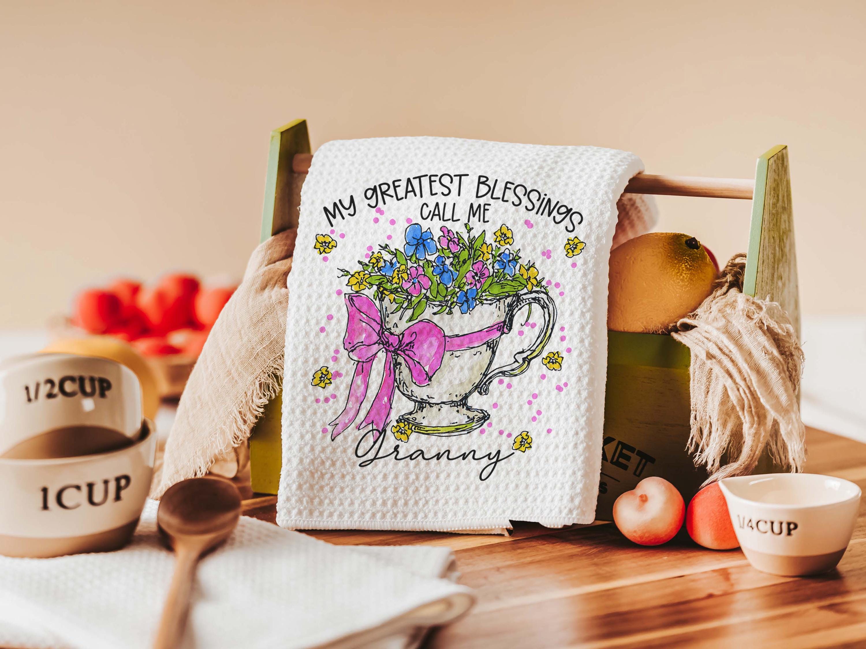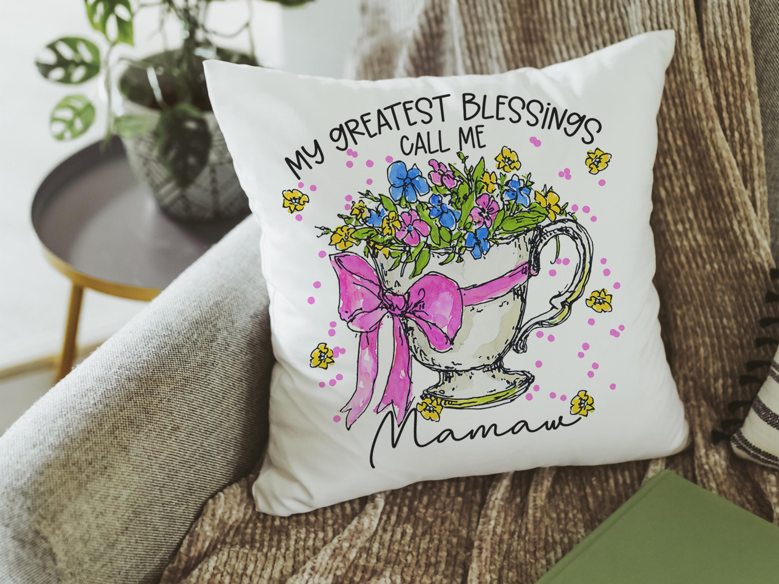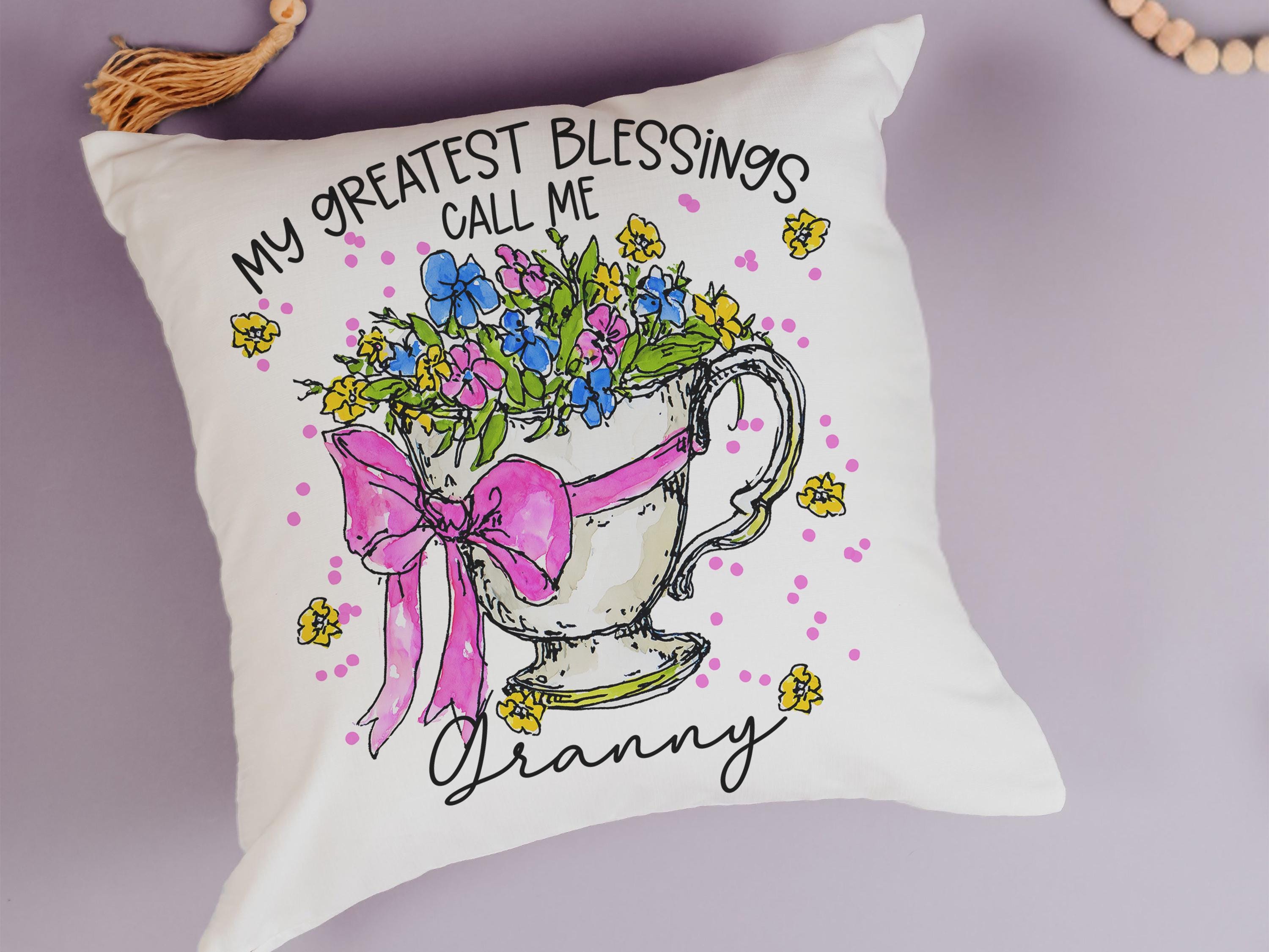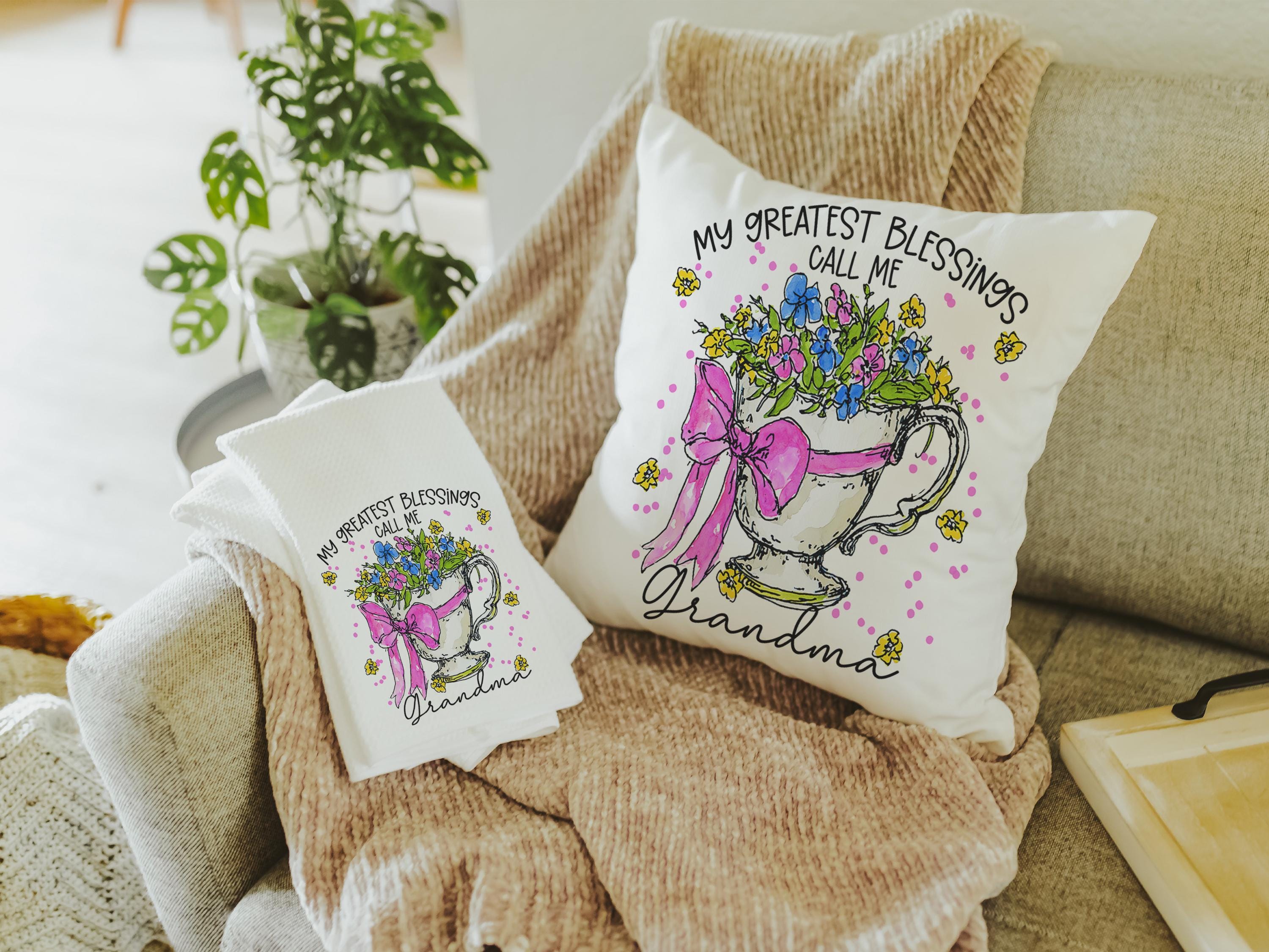 A personalized touch with “my greatest blessings call me…” makes this a piece she’ll want out every day, whether it’s on the couch or in the kitchen. Customize it with what the grandkids call her—Granny, Mimi, Grandma, Gigi, or more—making it a beautiful Mothers Day gift with matching pieces available to mix, match, or gift as a set.