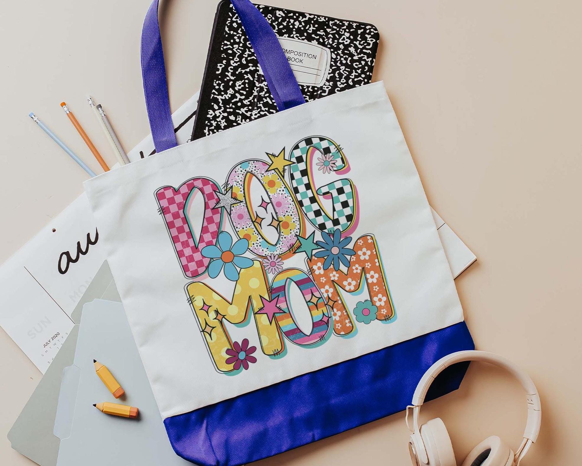 A colorful rainbow design says it all for this dog mom tote. A handy bag for dog walks, errands, or everyday use, and a great gift for dog lovers or dog owners. A fun choice for dog moms who want something practical with personality.