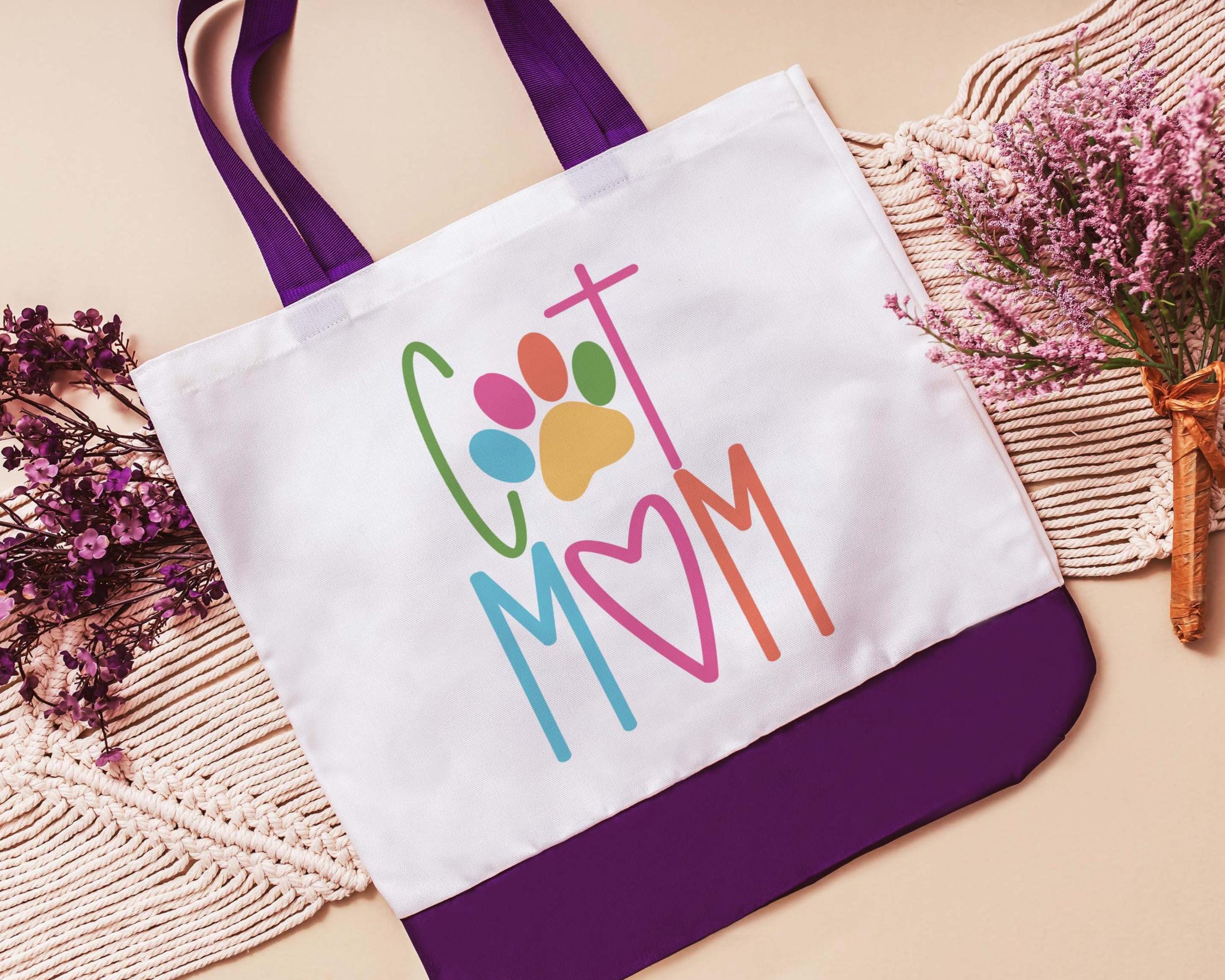 Carry your cat mom style with you with this colorful paw print tote. A handy bag for beach days, errands, shopping, or everyday use and a great choice for cat mama gifts. A fun option for cat lovers who want a bag they’ll use all summer.