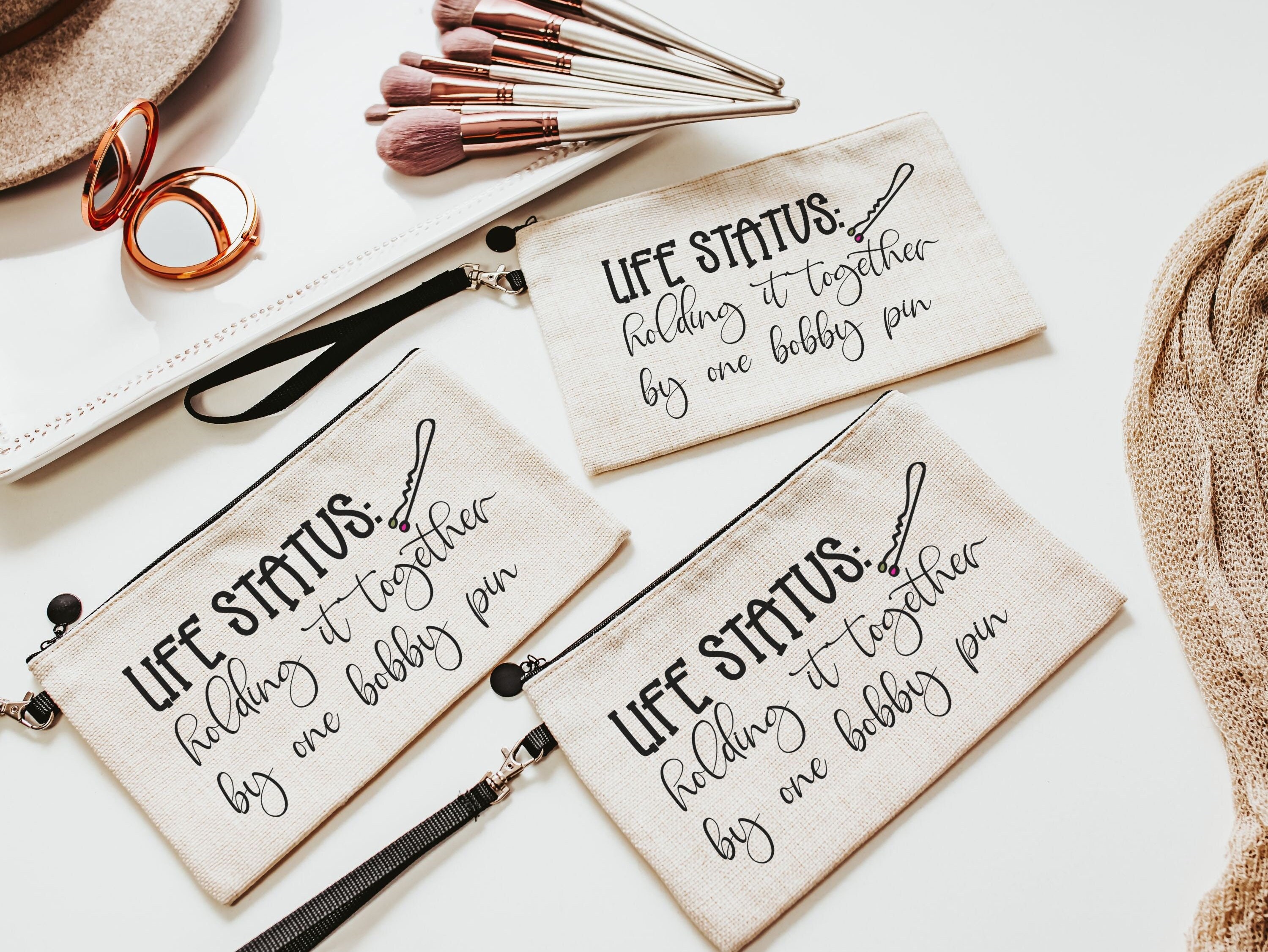 travel zipper pouch funny makeup bag for women, hair stylist gift, cute cosmetic bag for purse, hairdresser gift, mental health gifts, zip