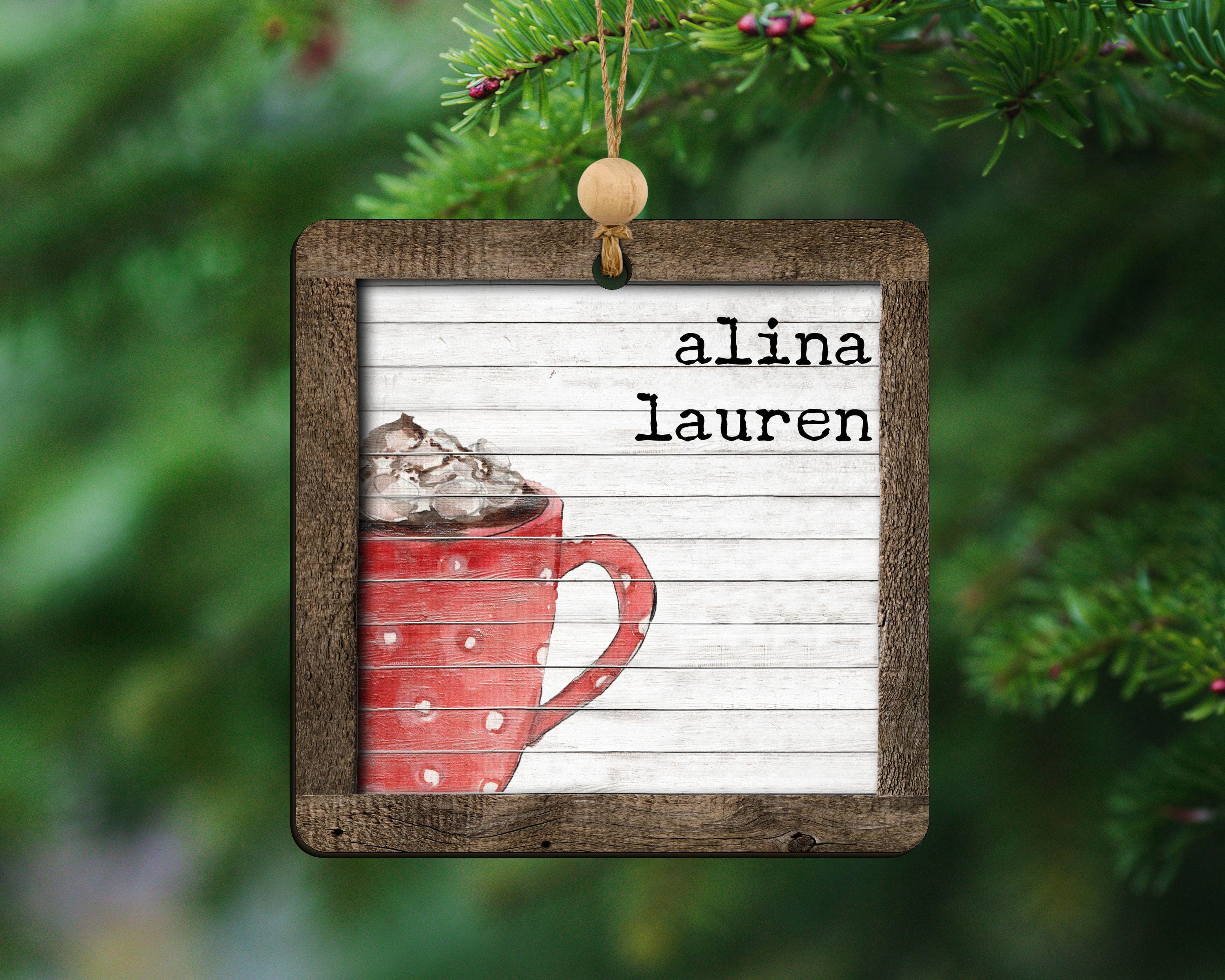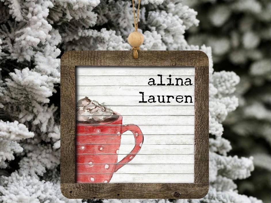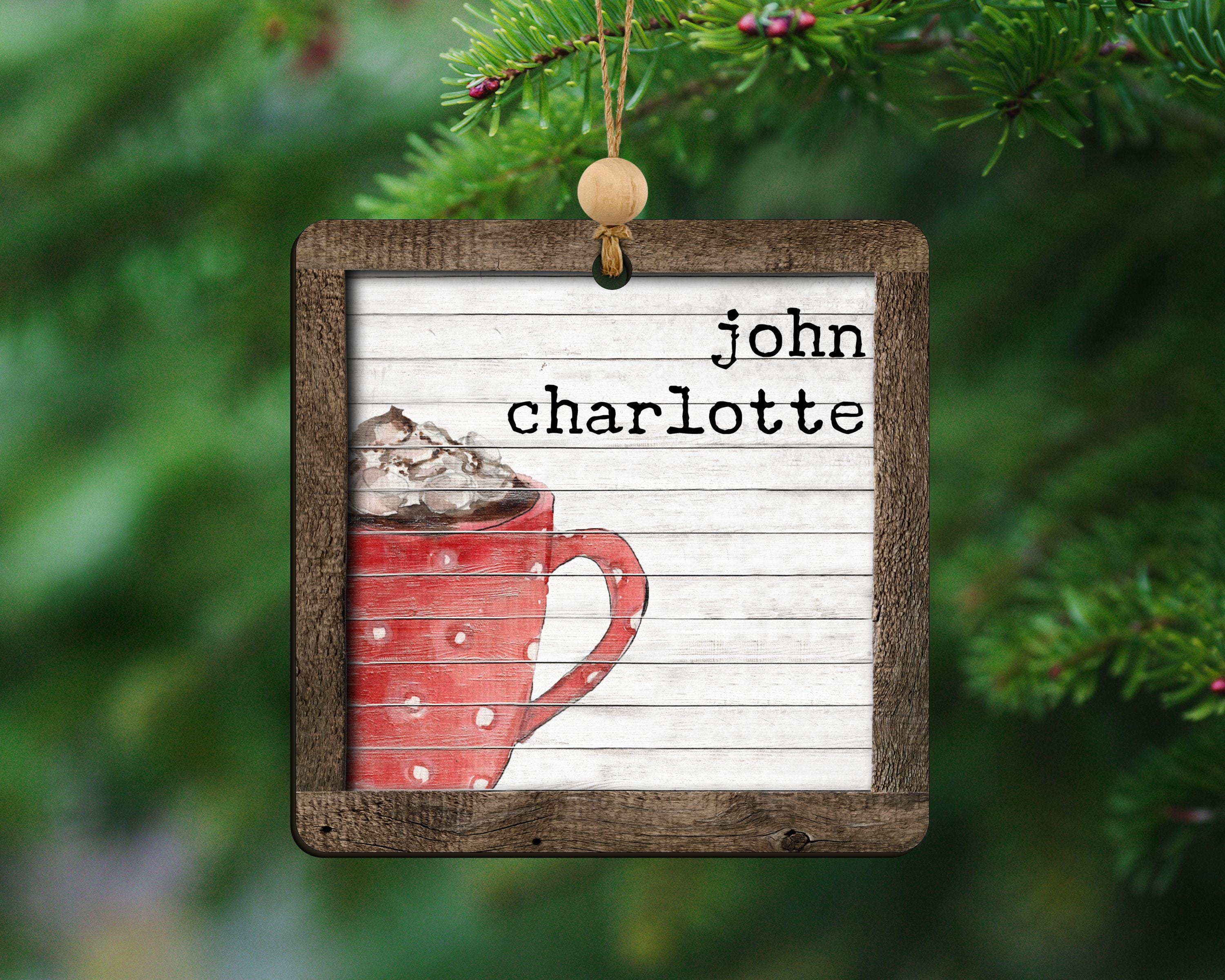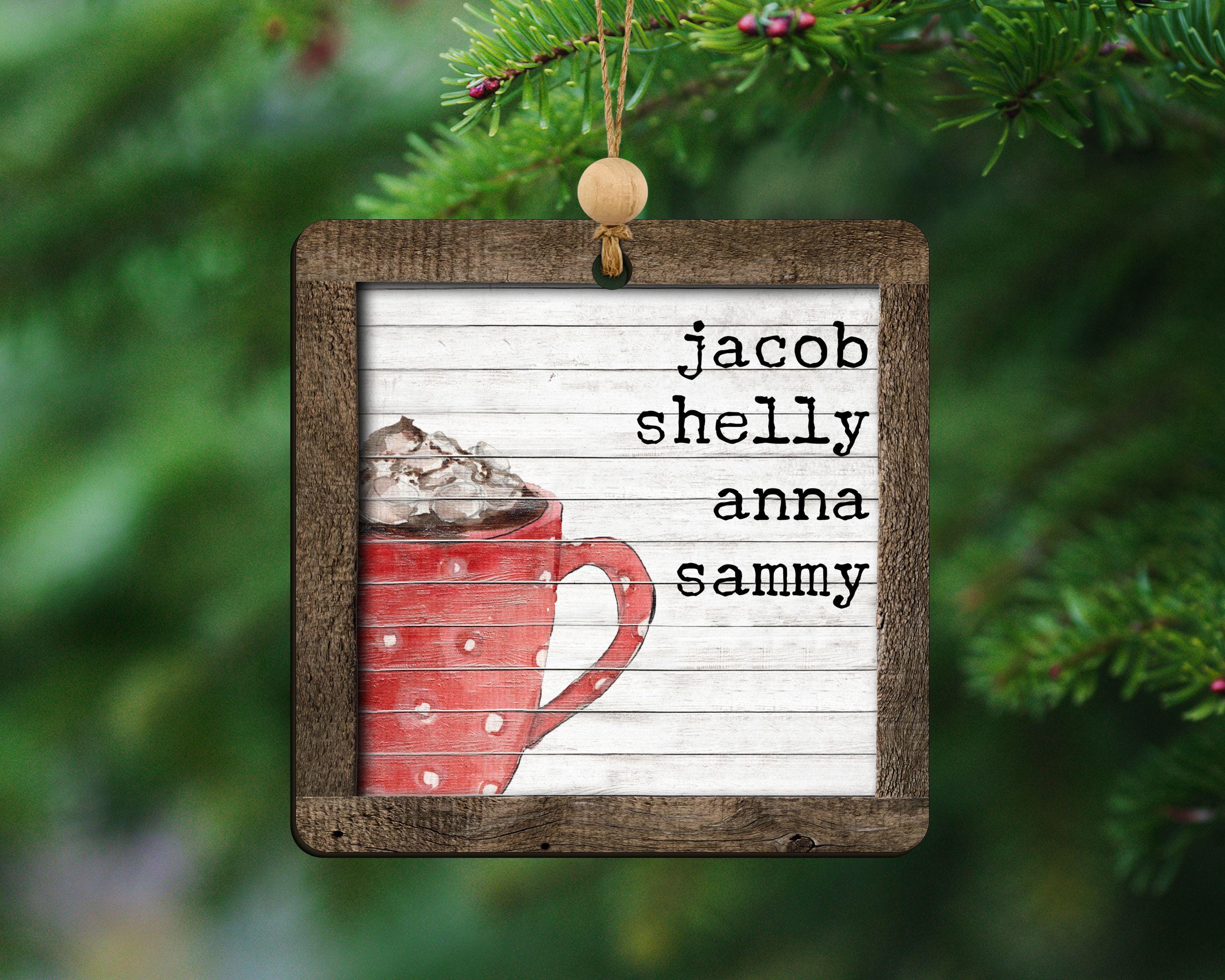 personalized hot chocolate ornament 2025, hot cocoa stocking tags for kids, cute Christmas ornament family name ornament wood, sentimental